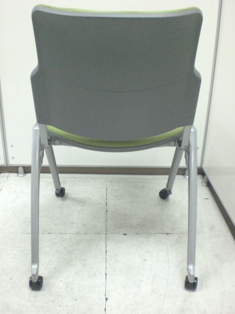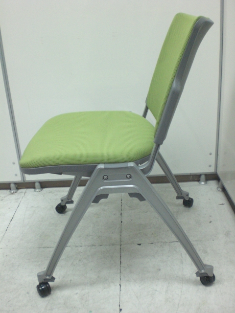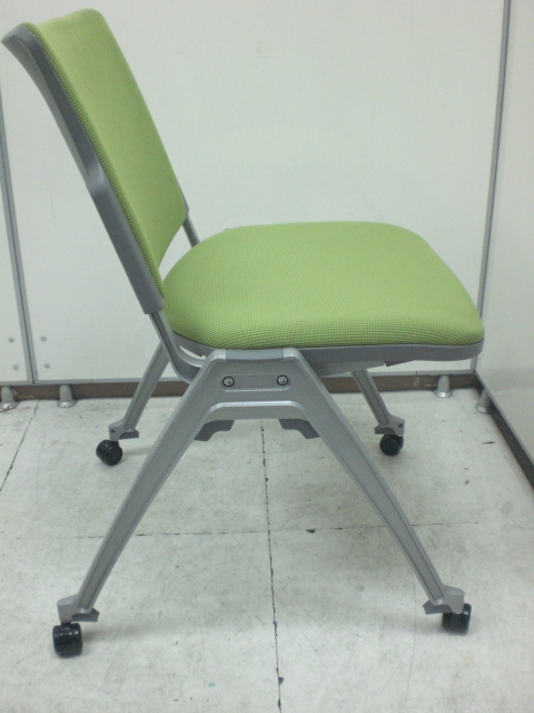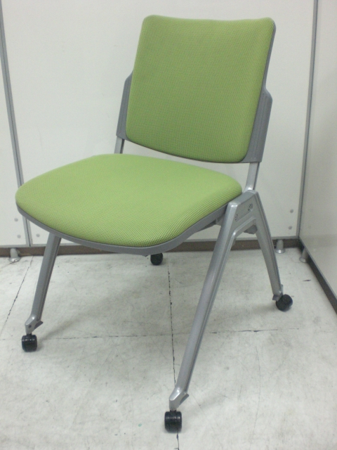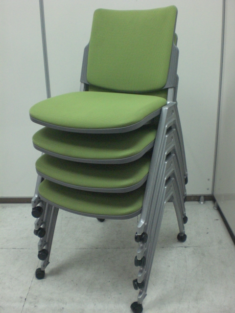 【4台入荷】グリーン色がまぶしいチェア 上に重ねられます しかもキャスター付き- 京都東寺店