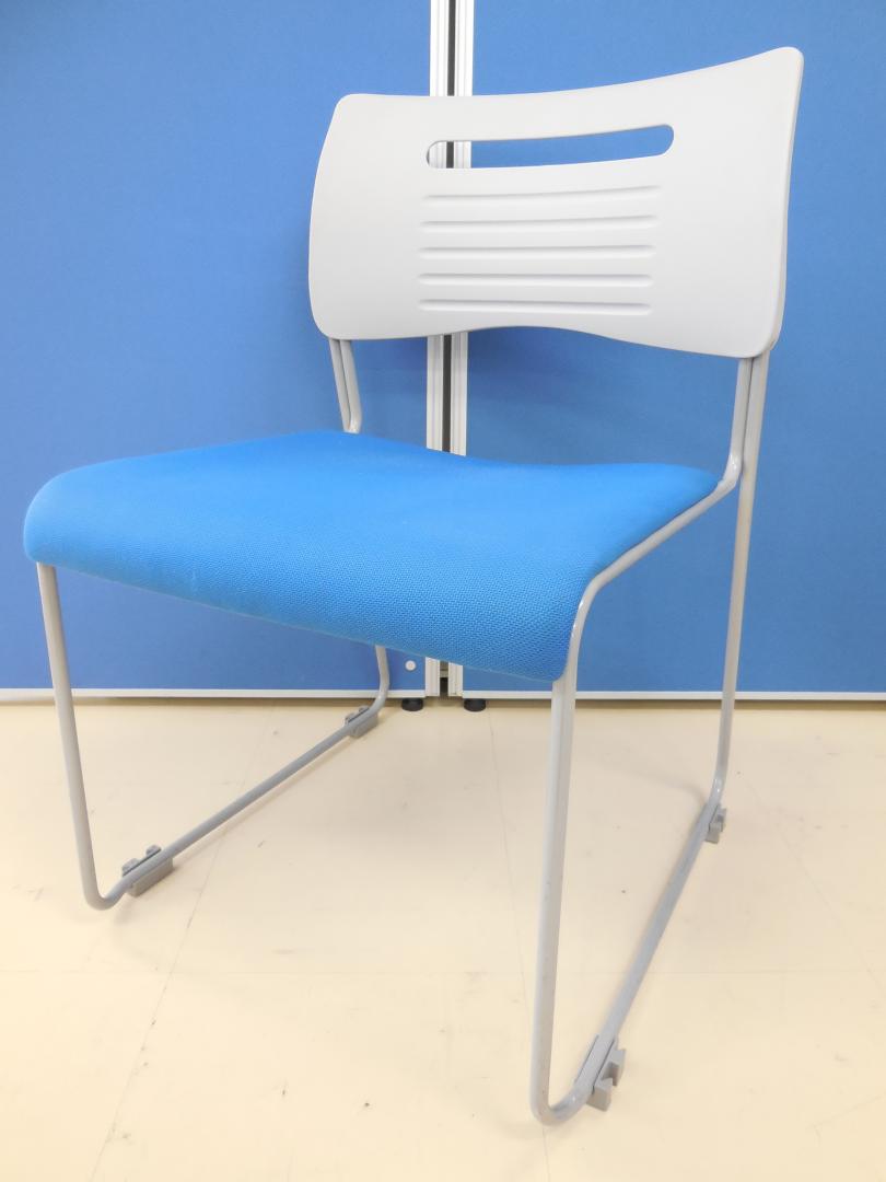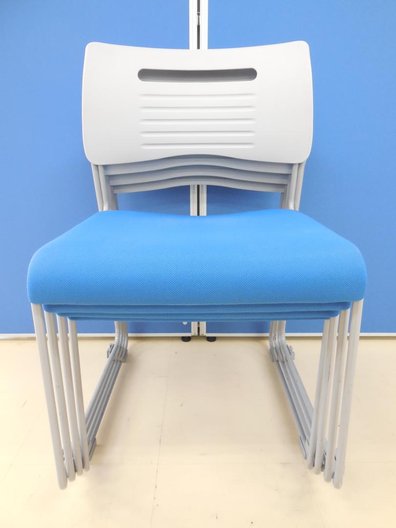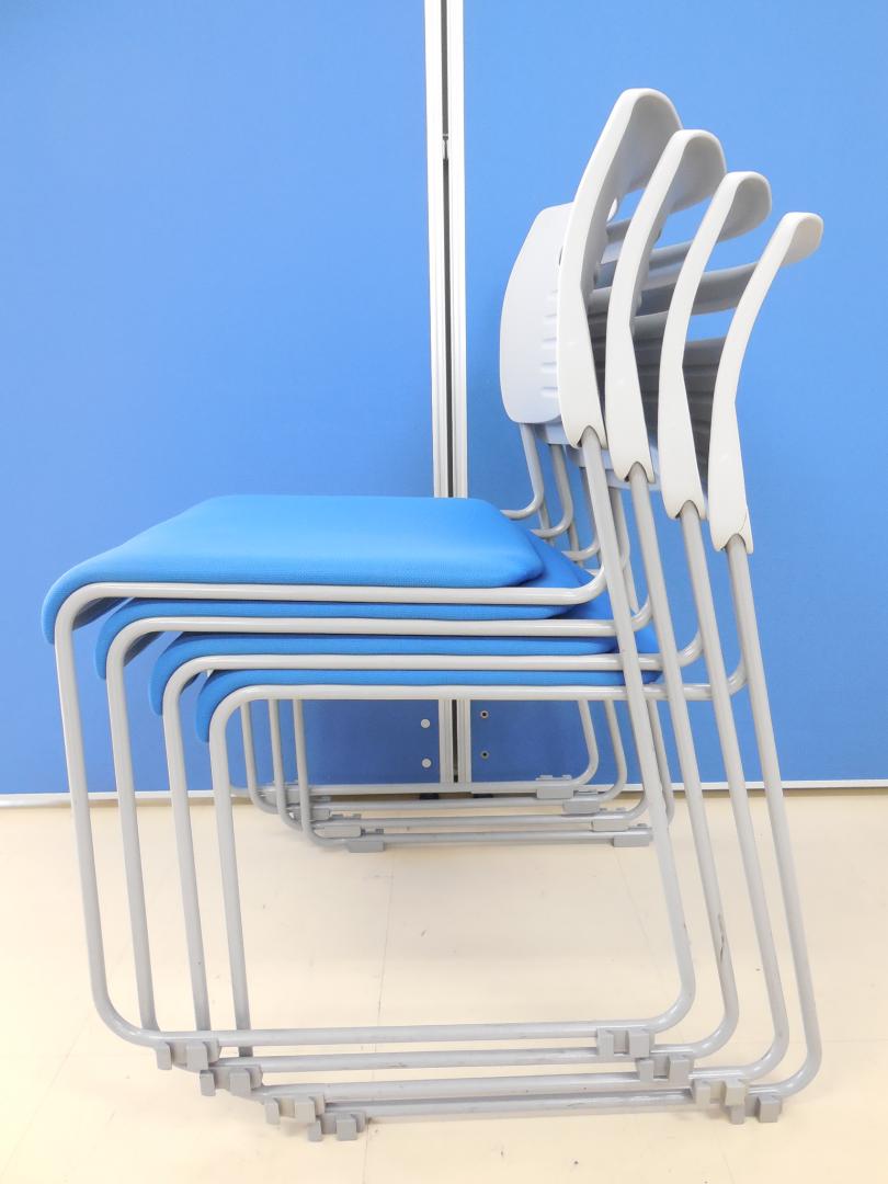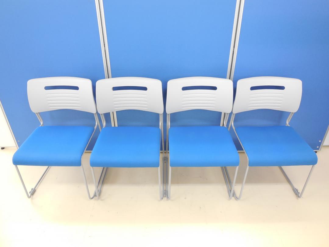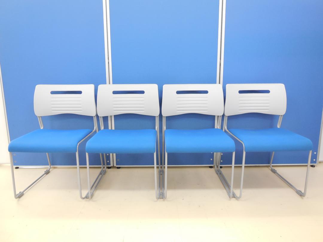【4脚セットで2,000円お買い得!】井上金庫製 スタッキングチェア 爽やかなブルー色■ミーティングやセミナー、研修等にオススメです!■使用しない時は、重ねて収納可能です!【状態良好】- 足立・葛飾店