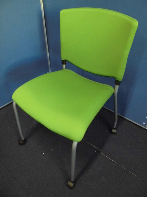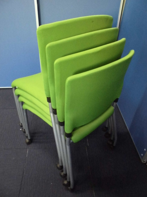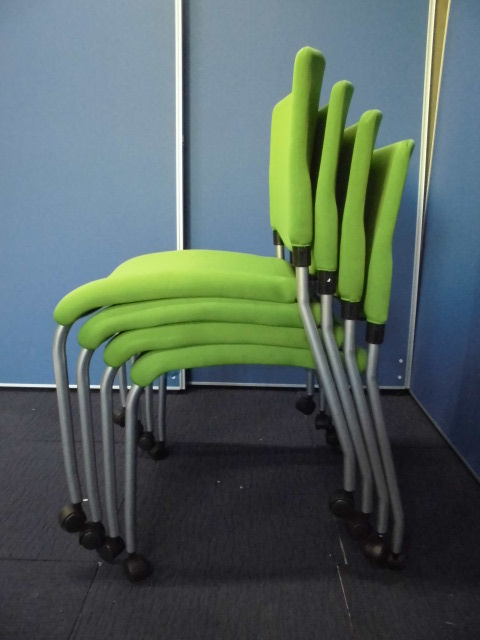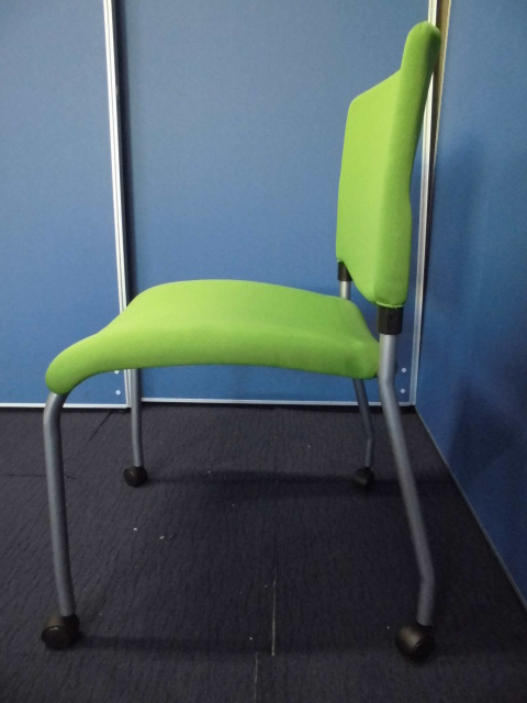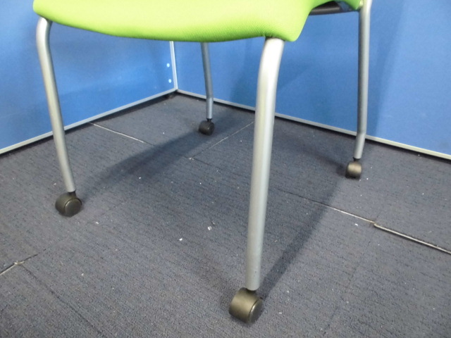 【明るさ引き立つライムグリーン】プラス|キャスター付スタッキングチェア4脚セット- 立川・八王子店
