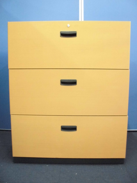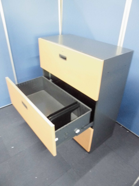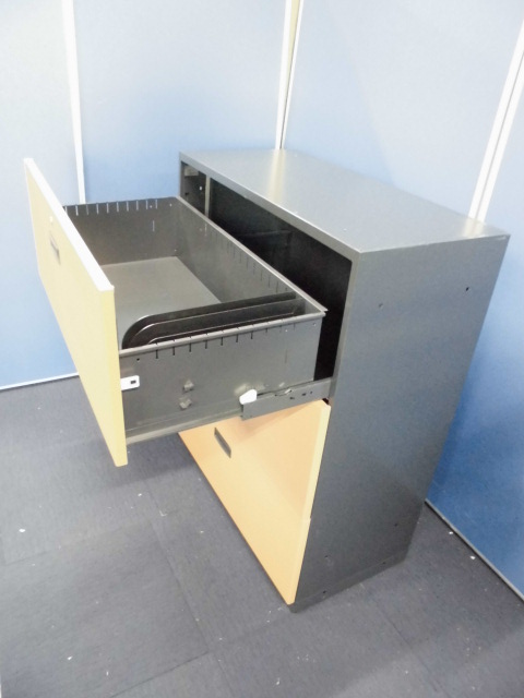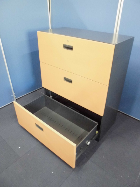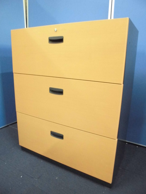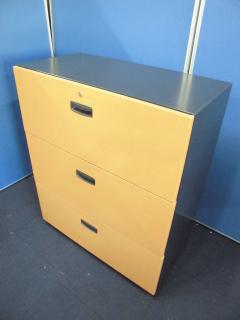 【木目のスチールキャビネット】イトーキ製|3段ラテラル【鍵付】- 立川・八王子店