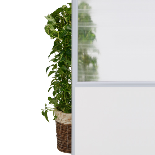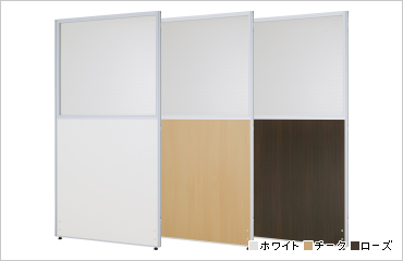 高さ1800mmのハイタイプながら、上半分を外光を通す半透明(ポリカーボネート製)にすることで、圧迫感を軽減した、メラミンタイプの上部半透明パーテーションです。