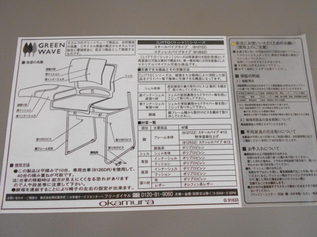 オカムラ製スタッキングチェアLITTOの4脚セットです。