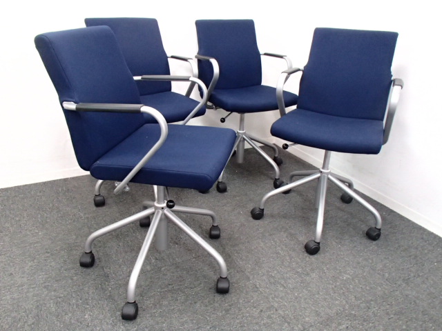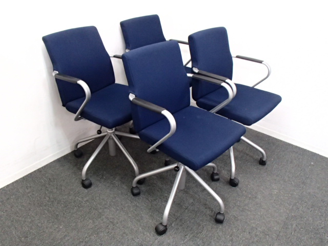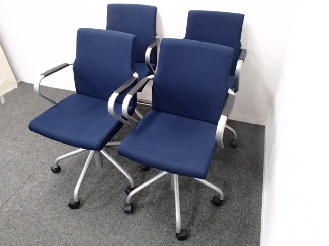 【4脚セット商品!】|内田洋行製|渋いカラーのネイビーブルー!- 大阪・堺店