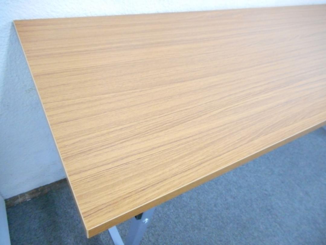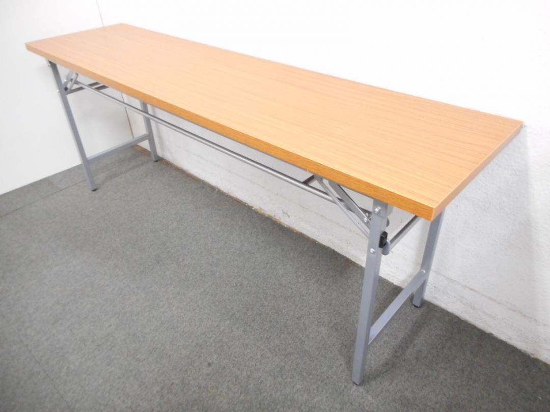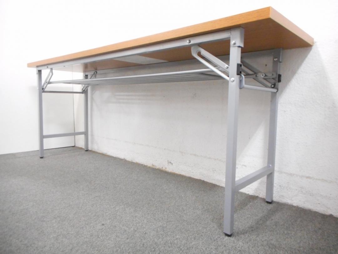 【多目的に活躍!】■折りたたみテーブル ■木目(チーク)■W1800×D450×H700mm 【オフィス家具】新品