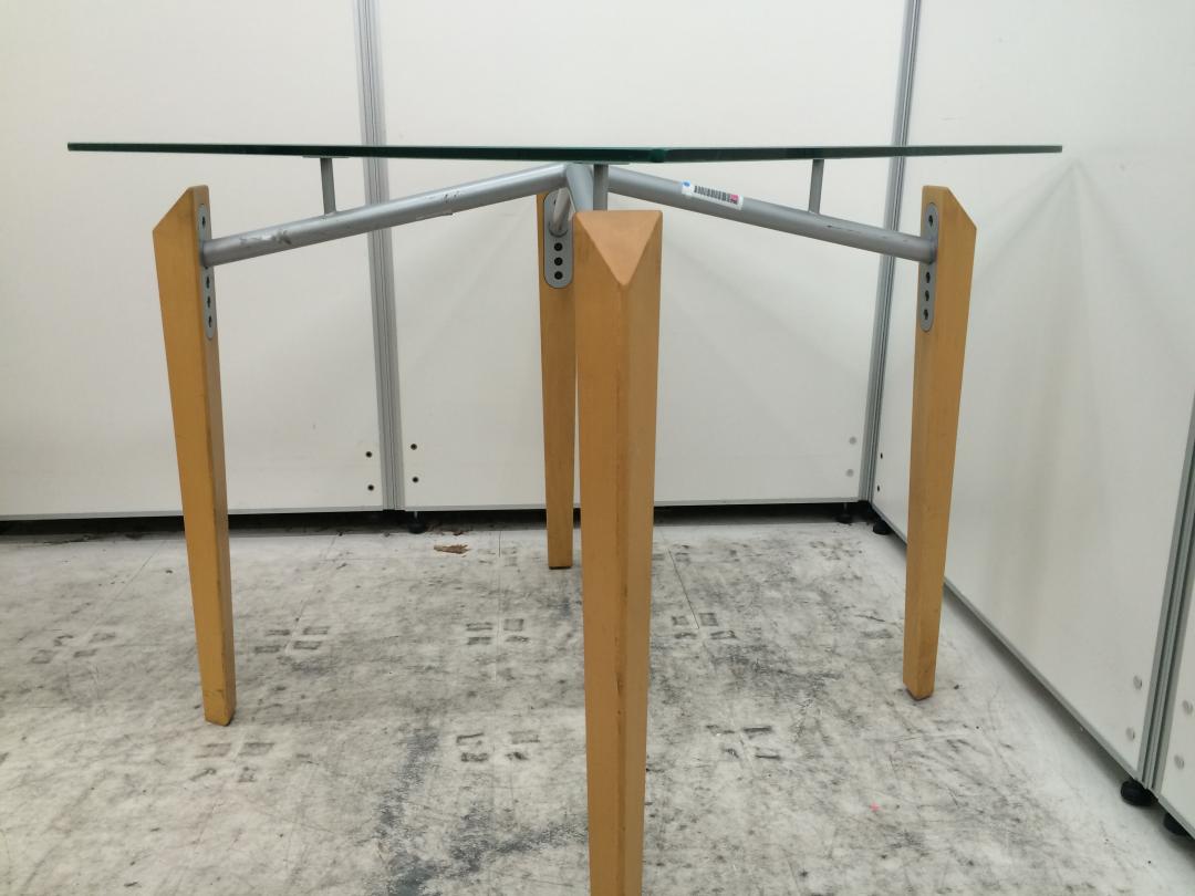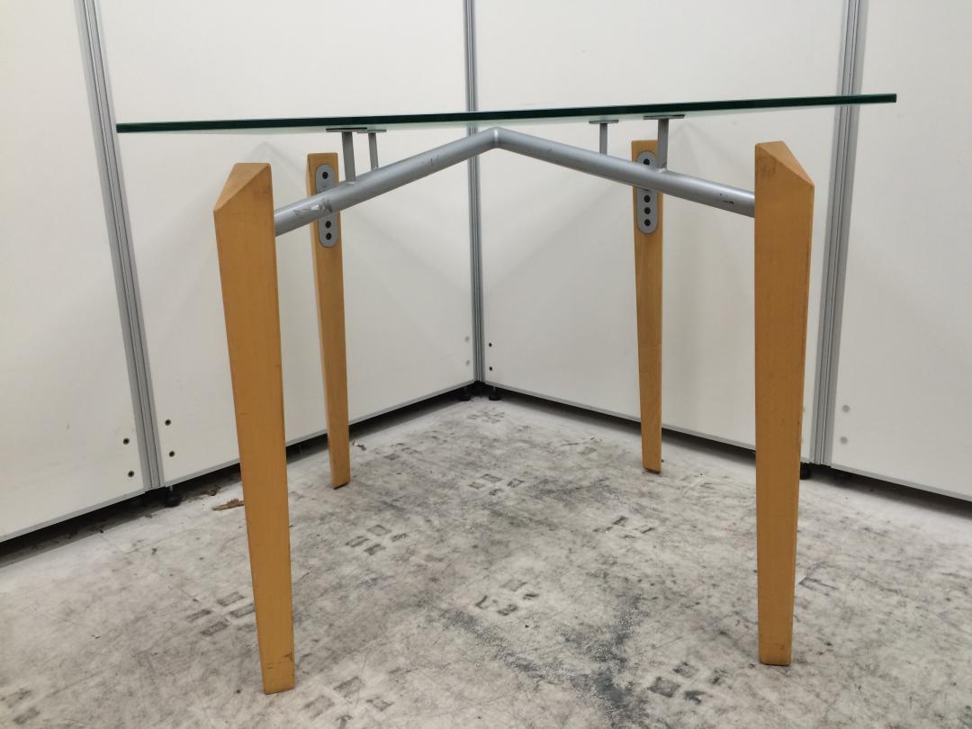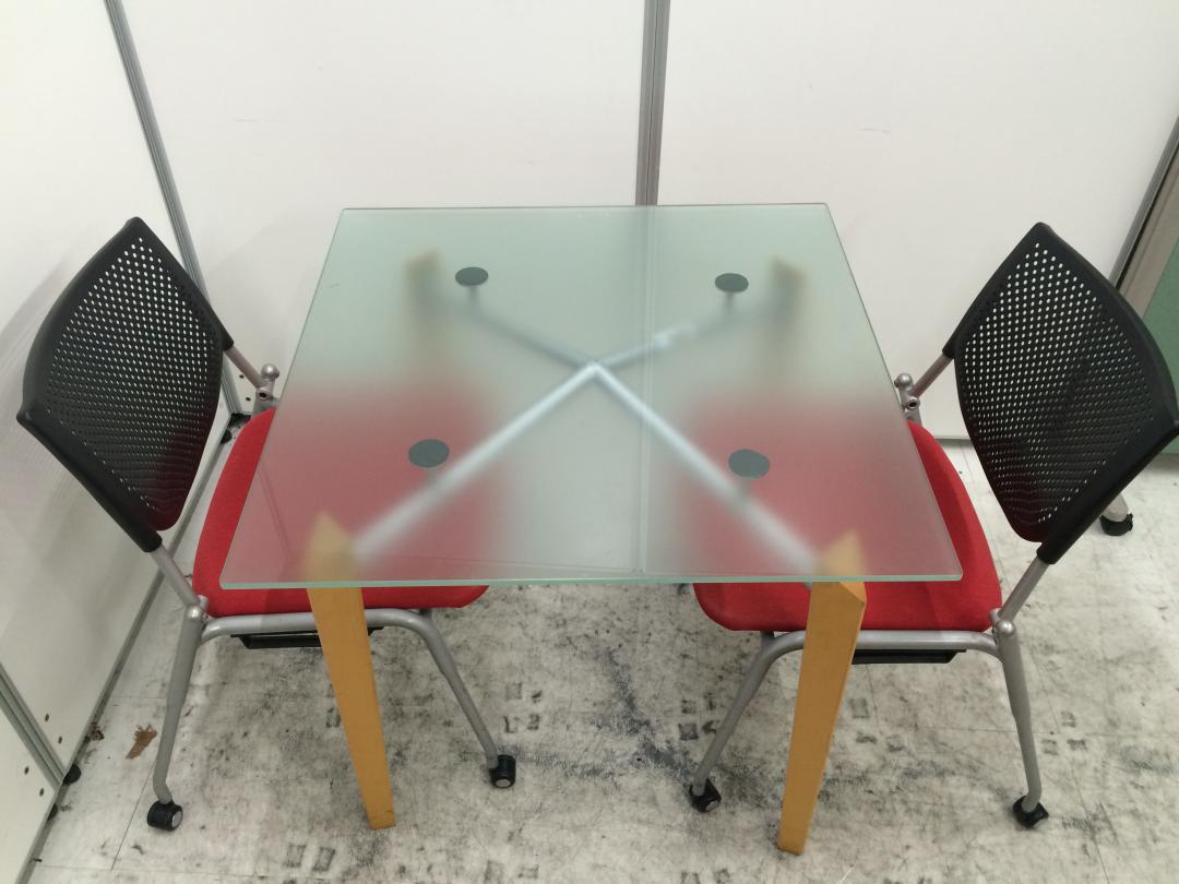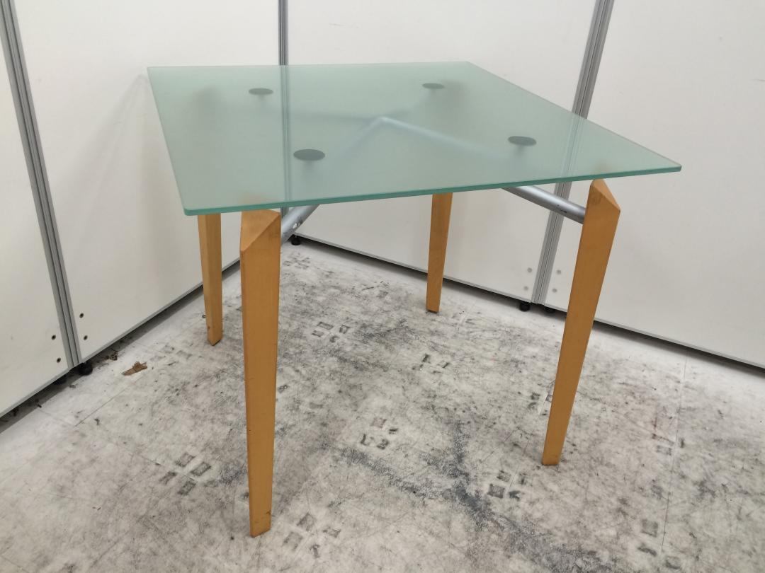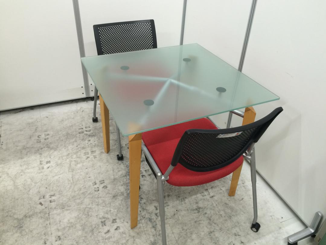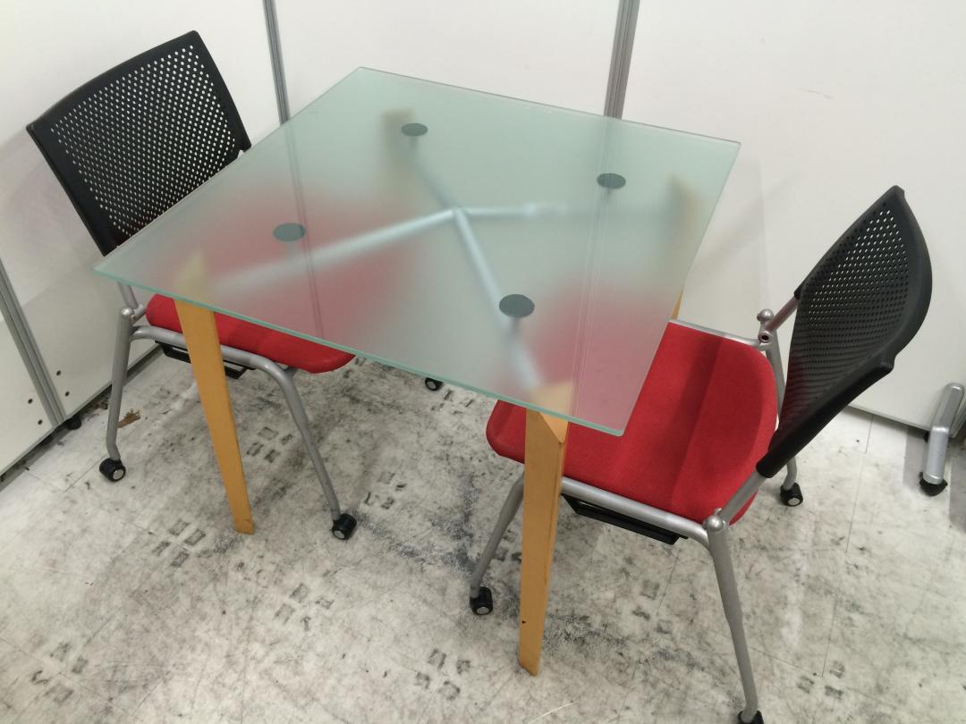 【限定1台】休憩室や会議室に最適 ガラス天板 角テーブル- 名古屋本店