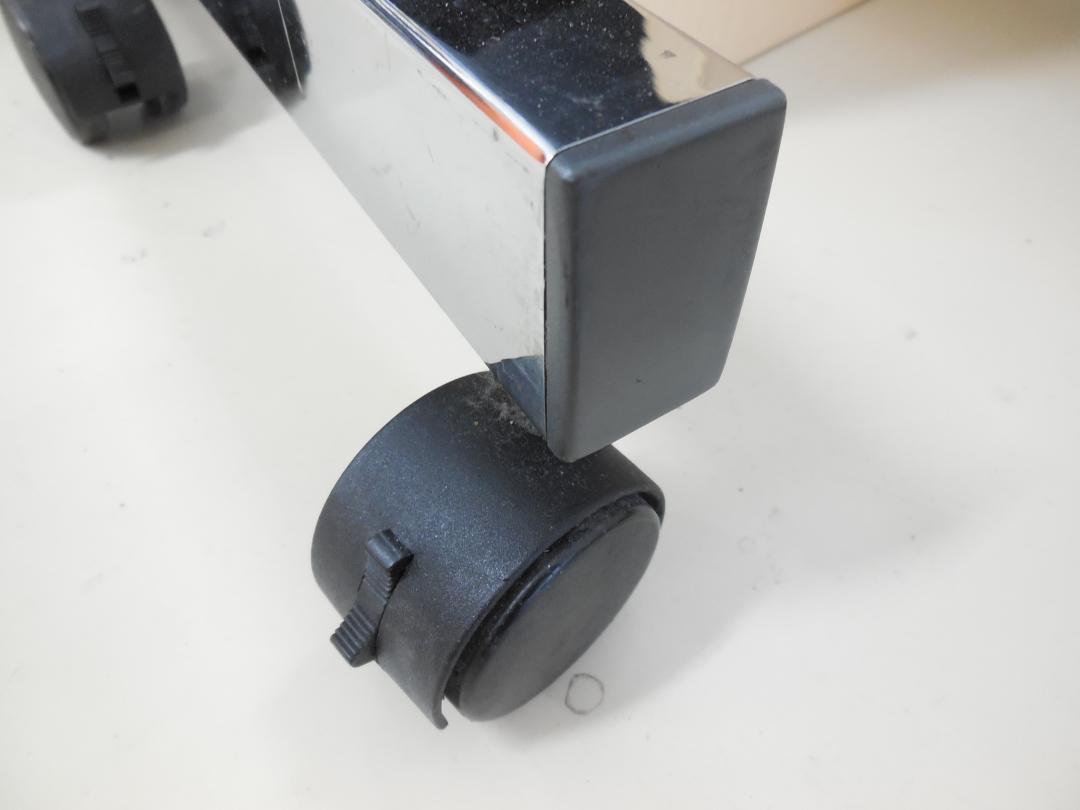 - 一部不具合あり天板歪み、アジャスター無し、キャスター使用不可ようなそのテーブルの本来の効用を果たすための機能以外の一部が使用不可な状態。(例、キャスターロッ ク機能使用不可、棚板無し等がある。)