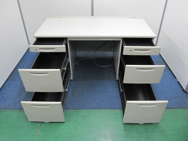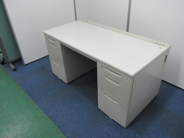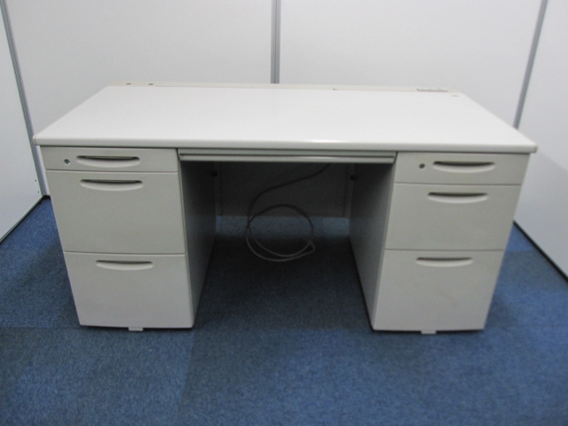【オフィスデスク】両袖机 天板にコンセントタップ(2口)付 配線もしやすい OAデスク【事務机】- 品川・三田店