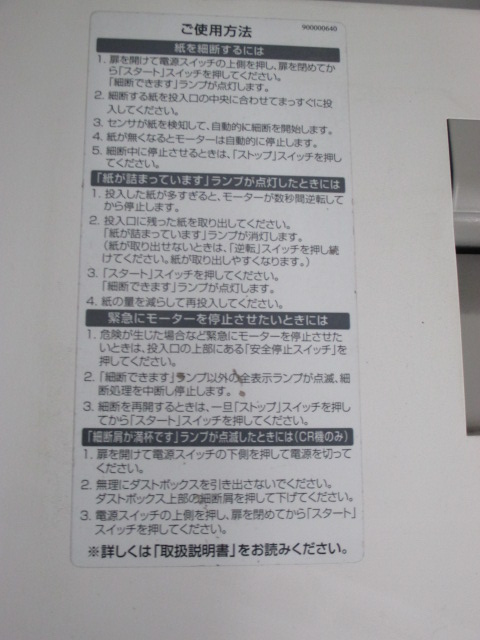 【状態良好】設置場所を選ばないスリムなシュレッダー【新品時裁断裁断枚数15枚】【クロスカット】状態について