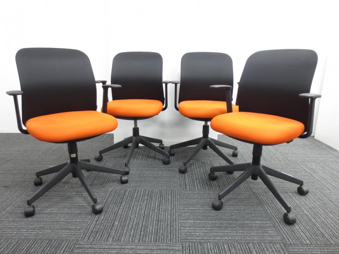 【3脚セット】【お買い得セットです!!】■コクヨ製 ■アガタDチェア ■オレンジ・ブラック 【相模原・町田店】サーキュラーバリューCO2削減量の算出について