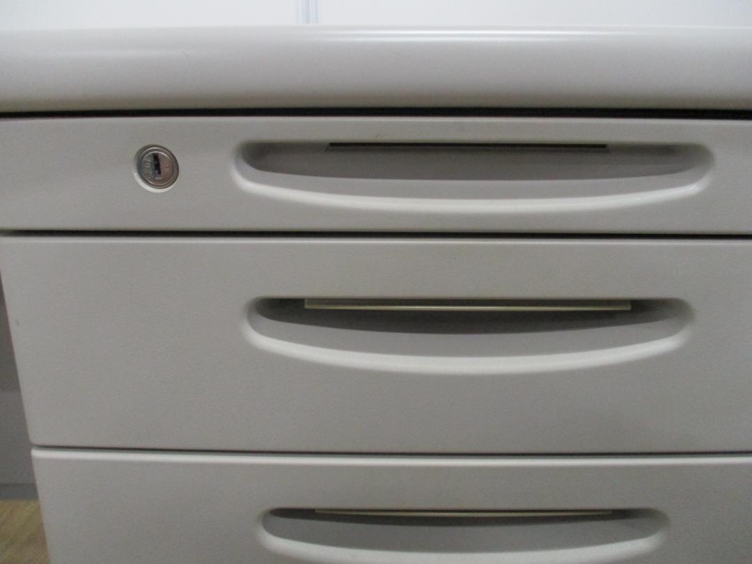 - 袖机のワゴンは、最下段がロング引出しになっており、従来より収納力120%アップ。