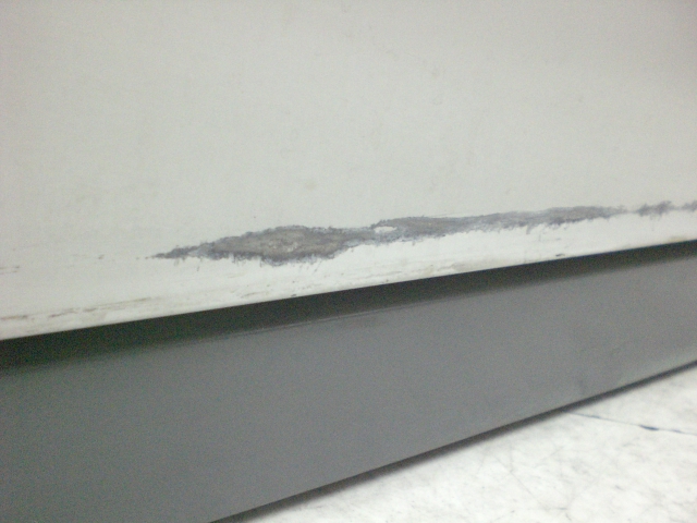 - あり黄ばみ・変色が広い範囲にうっすらある、または濃い黄ばみ・変色が一部ある。(例、天板、正面、背部、サイド部分にある。)