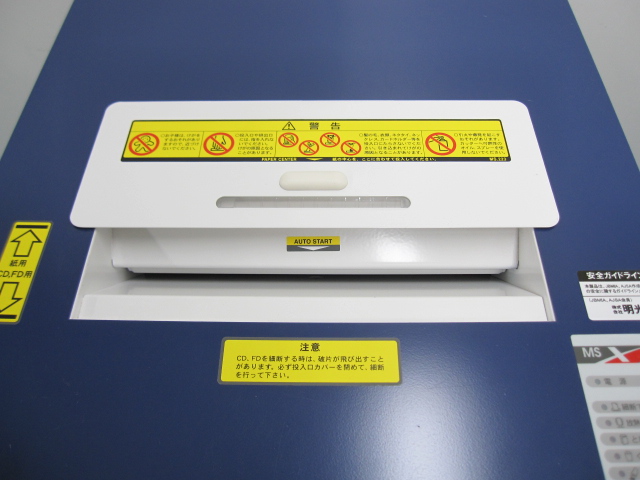 【マイナンバー対策】【オフィスシュレッダー】明光商会製 MSX-DPC65 パワークロスカット 最大裁断枚数:約65枚 細断寸法:約3.9 × 45.0mm コンピューターで裁断パワーを自動制御 ※非常停止スイッチ付【状態良好】【大量裁断】状態について