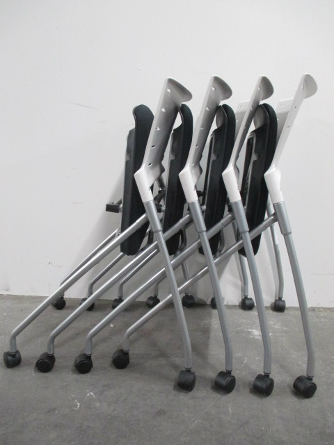 【セット商品】【状態良好】軽快なデザインなネスタブル収納可能なミーティングチェア マノスチェア 4脚セット 【中古会議用チェア ネスティングチェア】- 川崎店