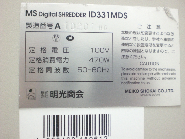 【中古】 MS-ID331SRM 明光商会 シュレッダー 151110