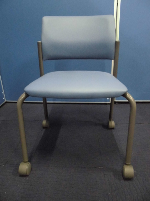 【ほぼ未使用品!状態◎】ビニールレザー|キャスター付スタッキングチェア2脚セット!|ブルー【コクヨ製】- 立川・八王子店