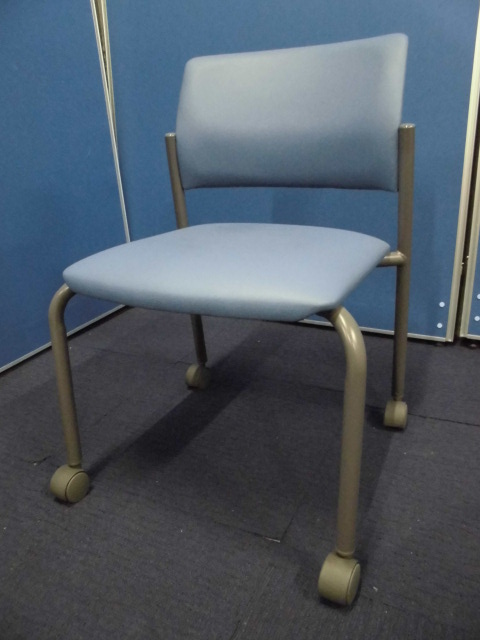 【ほぼ未使用品!状態◎】ビニールレザー|キャスター付スタッキングチェア!|ブルー|収納・移動に便利!【コクヨ製】- 立川・八王子店