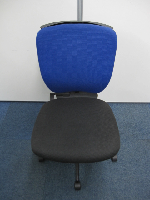 【オフィスイス】プラオチェア ローバック 肘無し ハンガー付 背:ブルー/座:ブラック 【ロット】【事務椅子】- 品川・三田店