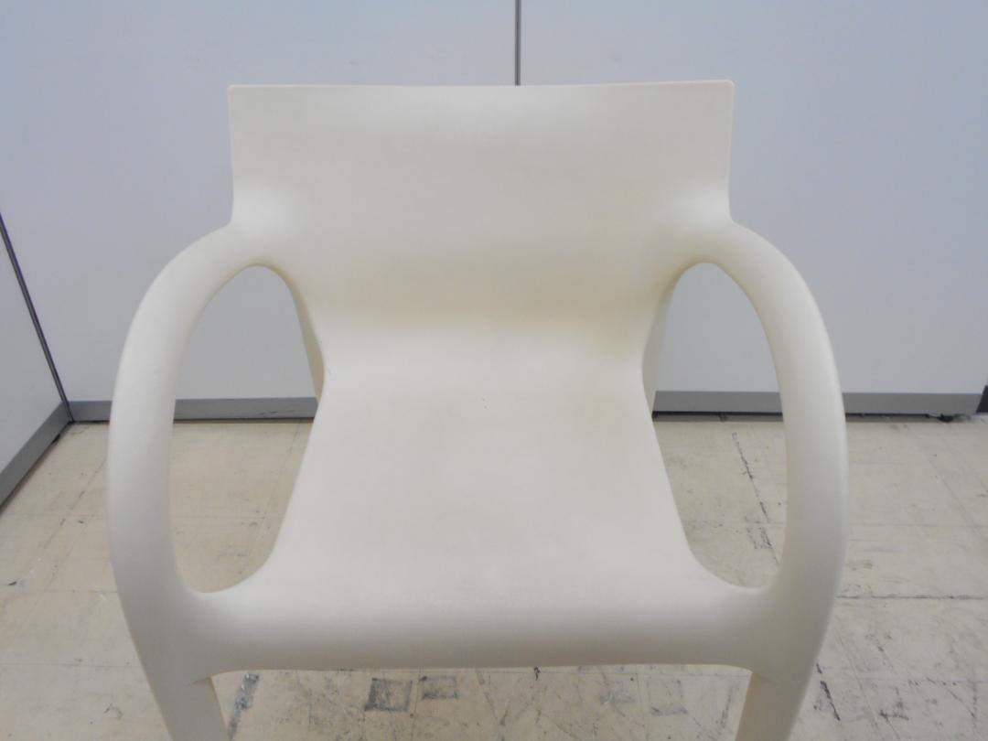 - かなり強い濃い黄ばみ・変色が商品全体にある。(例、座面・背もたれ、脚部等にある。)