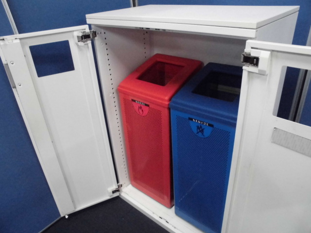 【中古希少在庫】ダストボックス(ゴミ箱付)|スチール家具|オカムラ製|天板付|ホワイト- 立川・八王子店