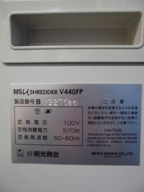 【中古】 MS-V440FP 明光商会 シュレッダー 151316