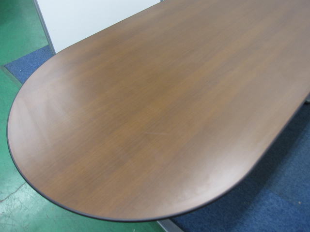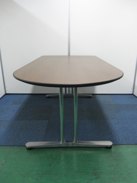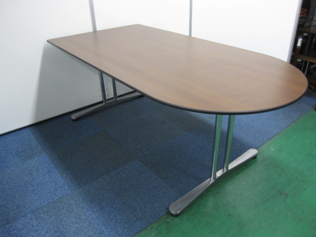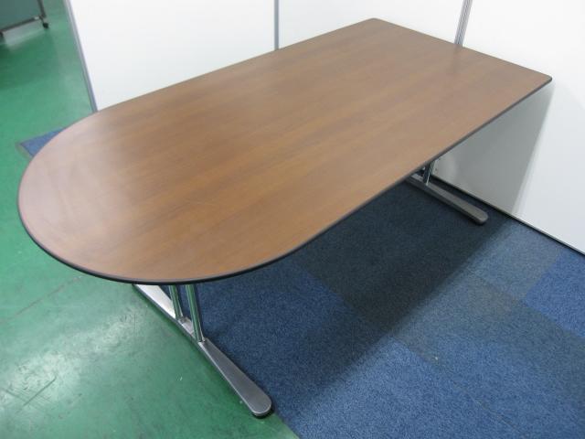 【高級会議テーブル】【ロケット型】インターレイスシリーズ 幅180cm 奥行90cm 半円 カラー:ペアウッドダーク(高級感ある木目天板)【会議机】- 品川・三田店
