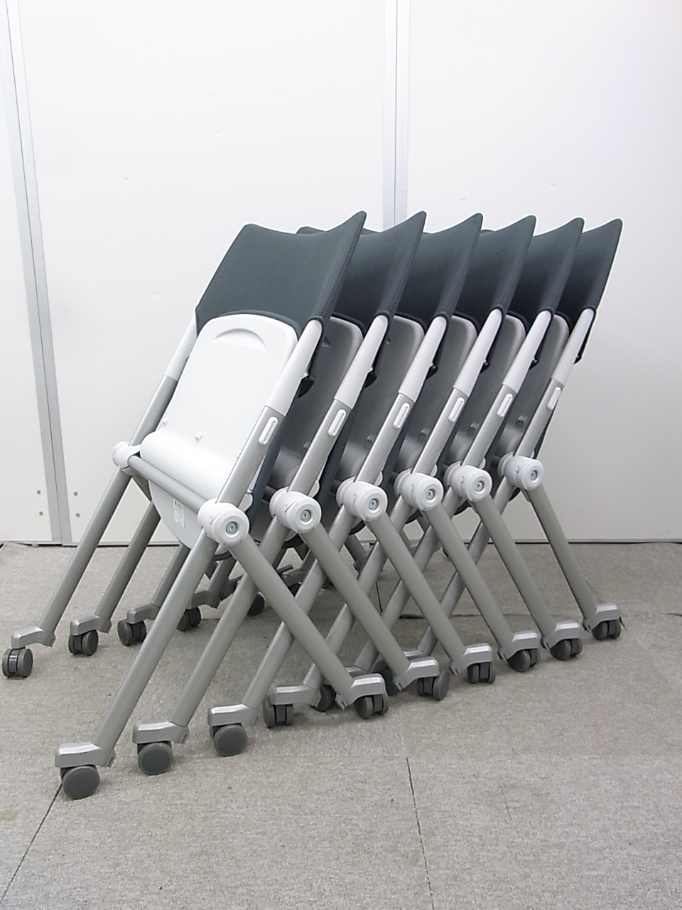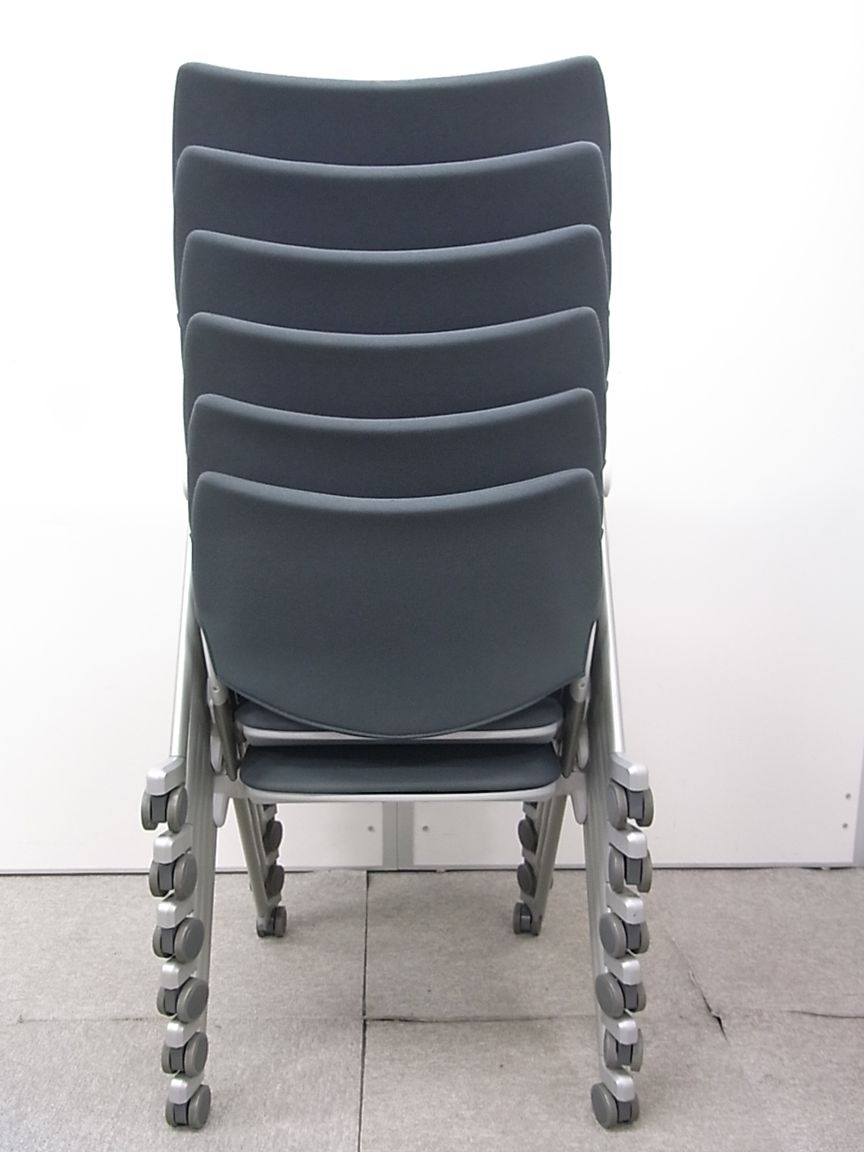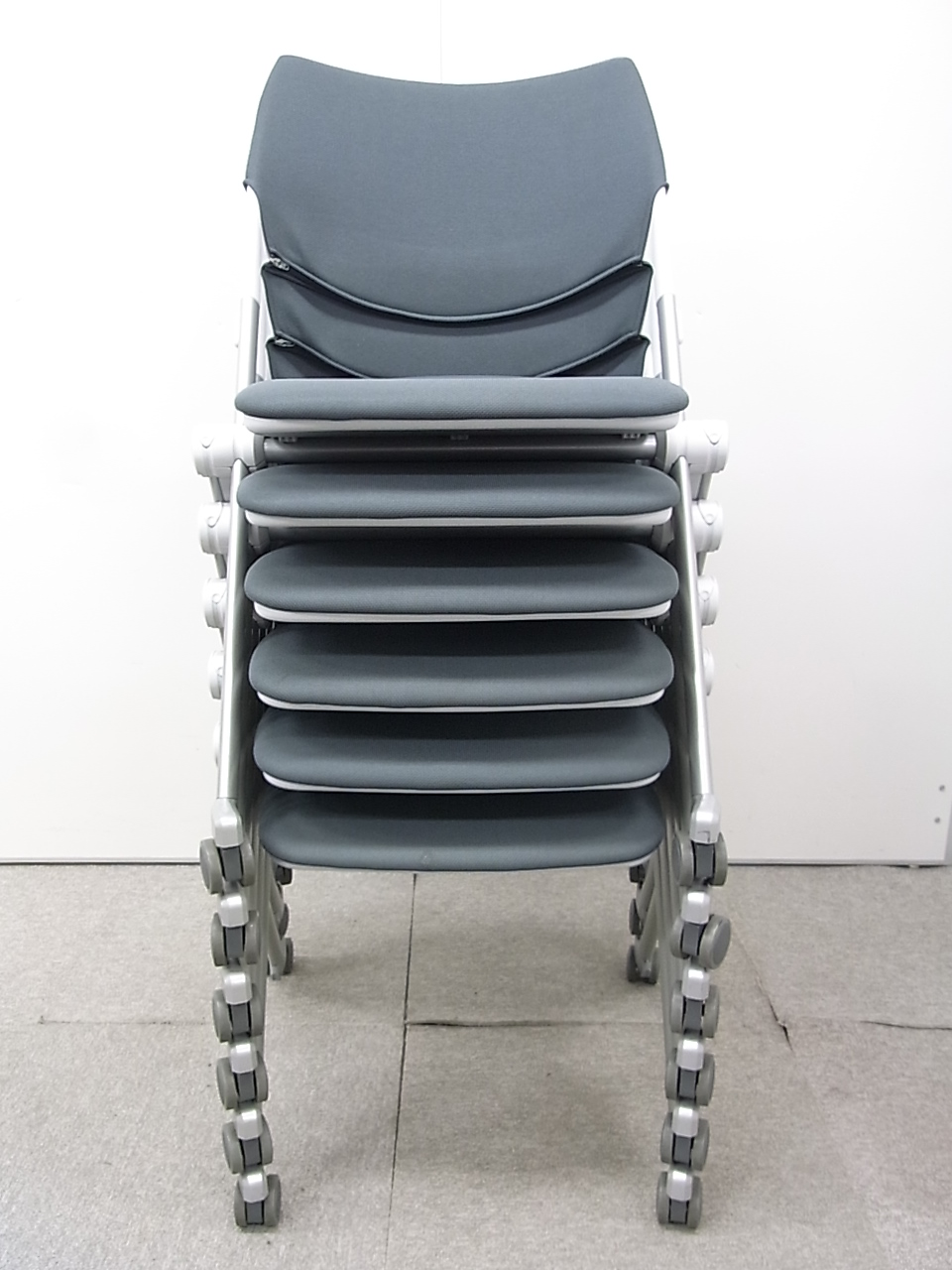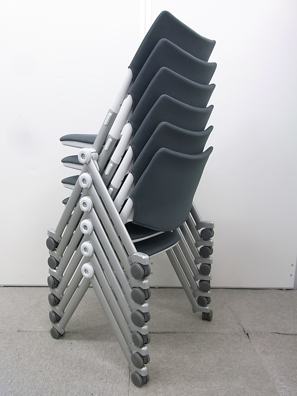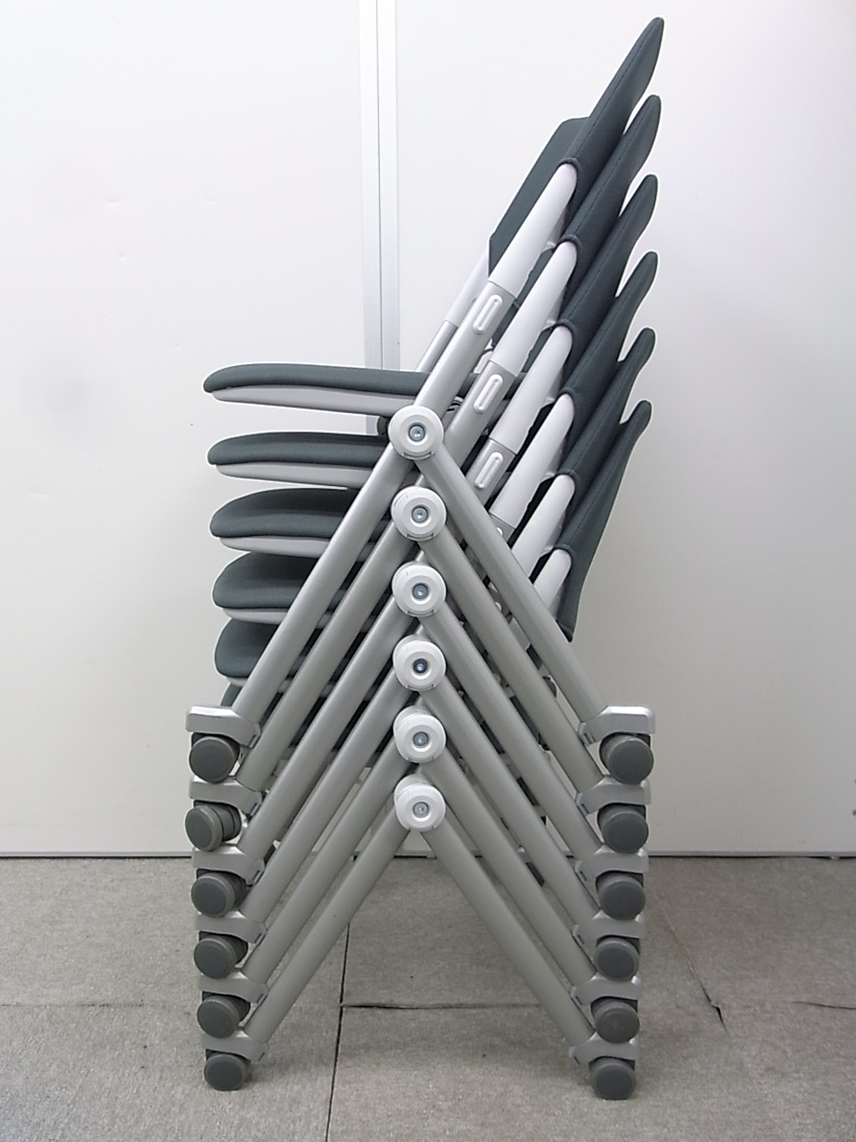 座面を跳ね上げて横スタッキングが可能で効率よい収納が可能となっております。