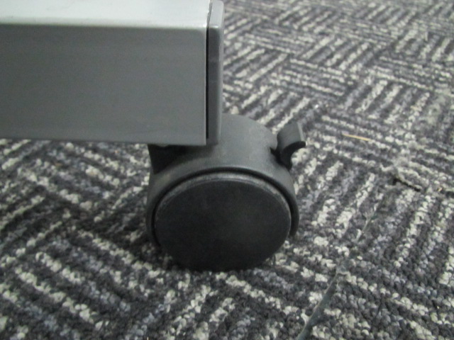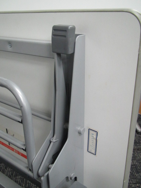 - 一部不具合あり天板歪み、アジャスター無し、キャスター使用不可ようなそのテーブルの本来の効用を果たすための機能以外の一部が使用不可な状態。(例、キャスターロッ ク機能使用不可、棚板無し等がある。)