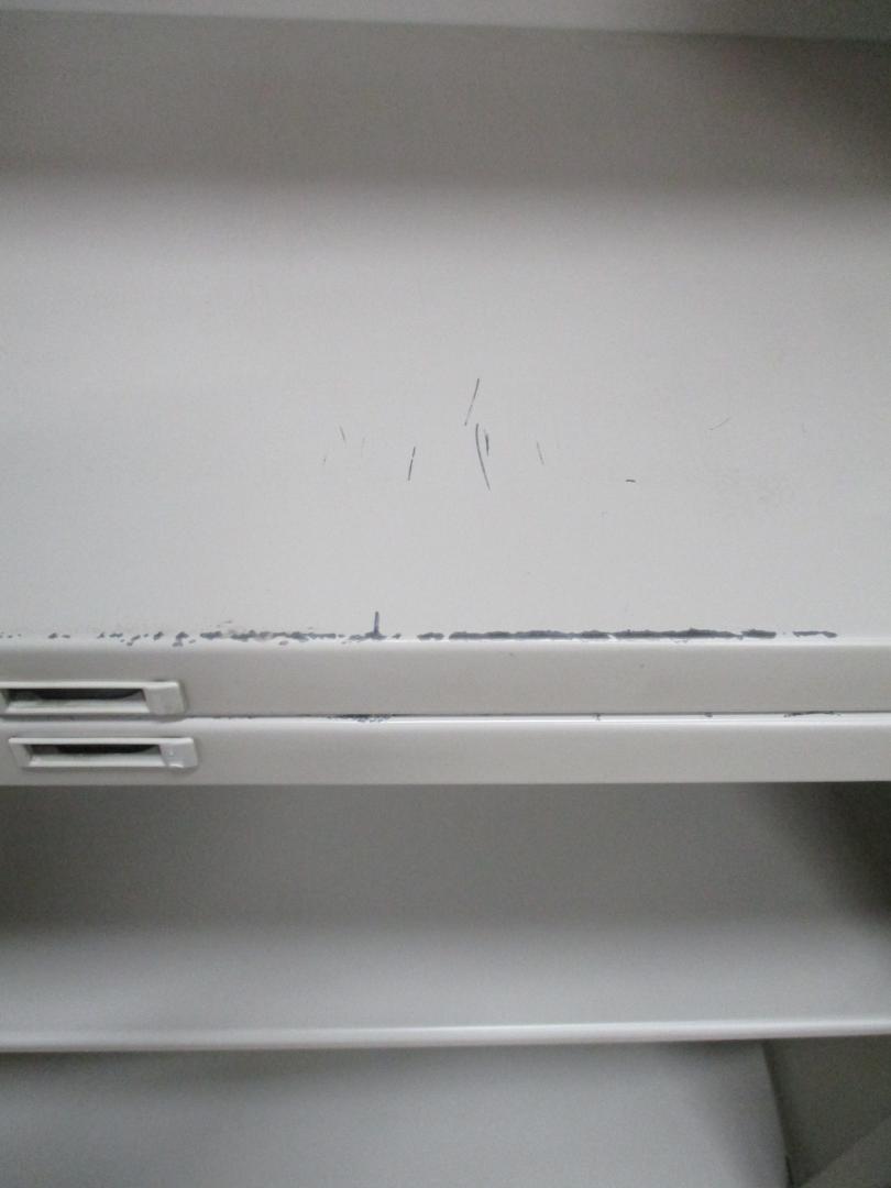 - 一部不具合ありそ引出の開閉不可、施錠不可、棚板無しといったの書庫の本来の効用を果たすための機能以外の一部が使用不可(例、扉、引出の開閉がしづらいなどがある。 )
