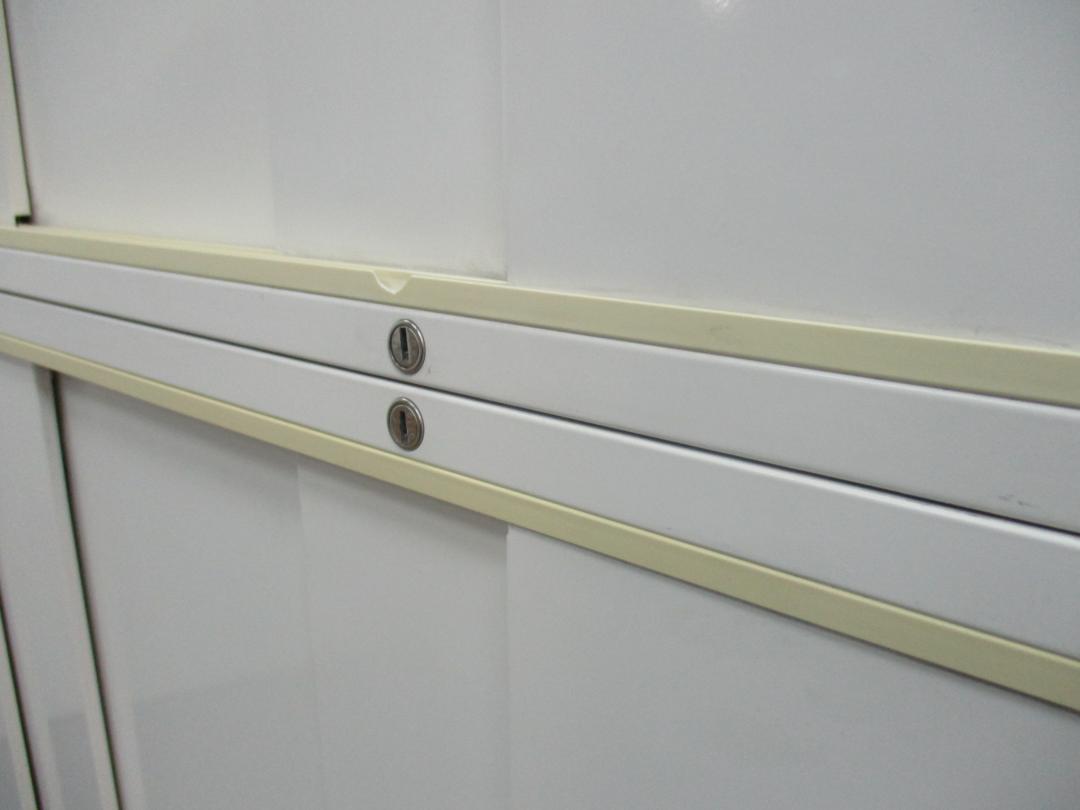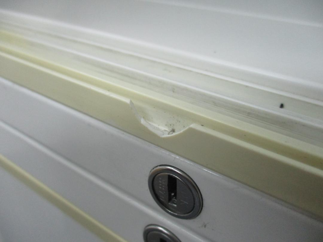 - 多数不具合あり引出の開閉不可、施錠不可、棚板無しといったその書庫の本来の効用を果たすための機能以外の多数が使用不可(例、扉、引出の開閉がしづらいなどがある。 )
