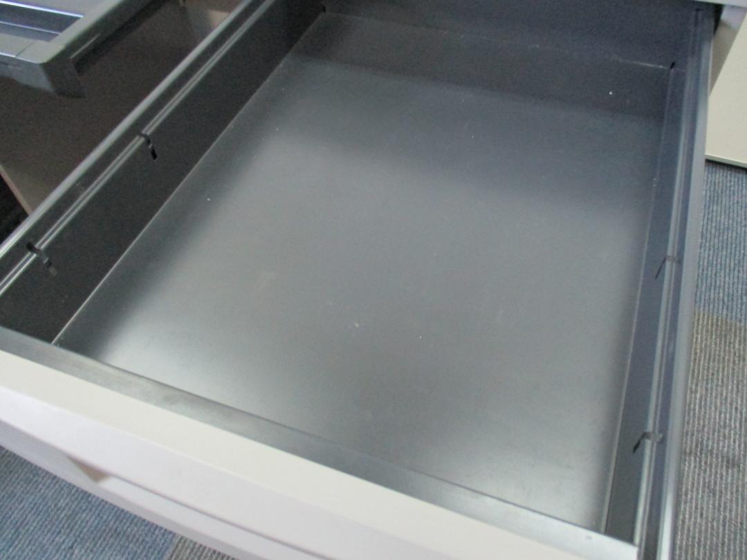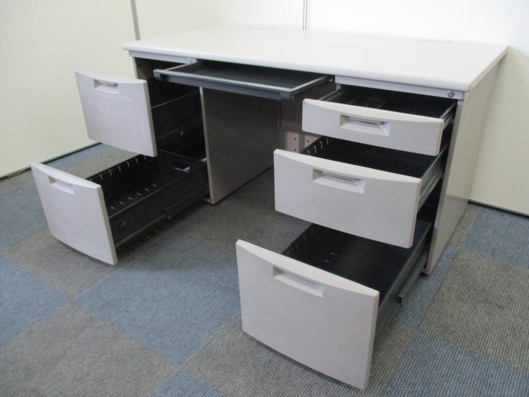 左袖は2段(A4ファイルが収納可能)、右袖3段と収納力バツグンな両袖机です。