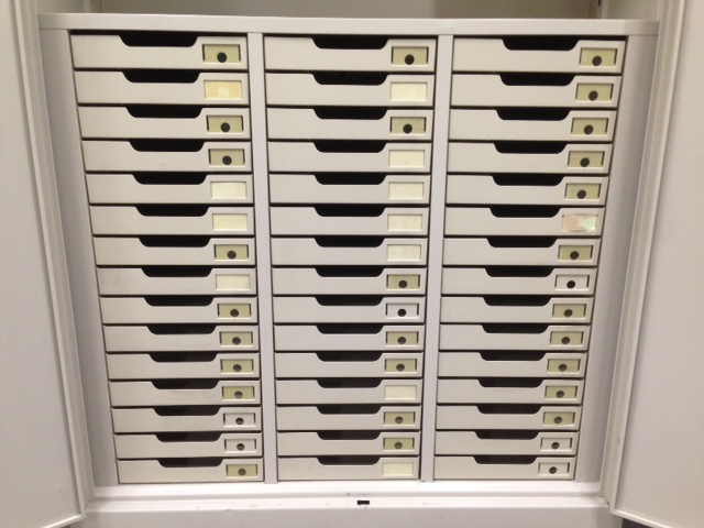 下段のトレイの数は3列15段で45種類の書類が収納可能です。