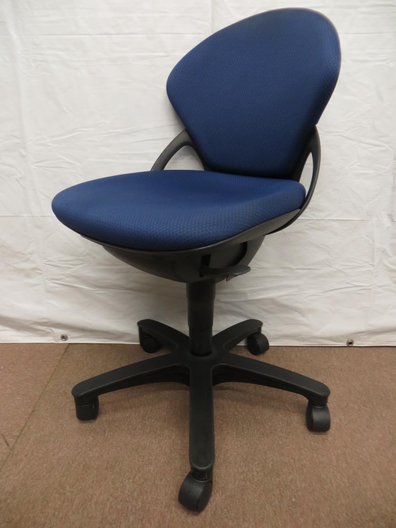 【関西倉庫在庫品】イトーキ製 プレーゴシリーズ ブルー 肘無しローバックチェア!! オフィスバスターズ梅田本店