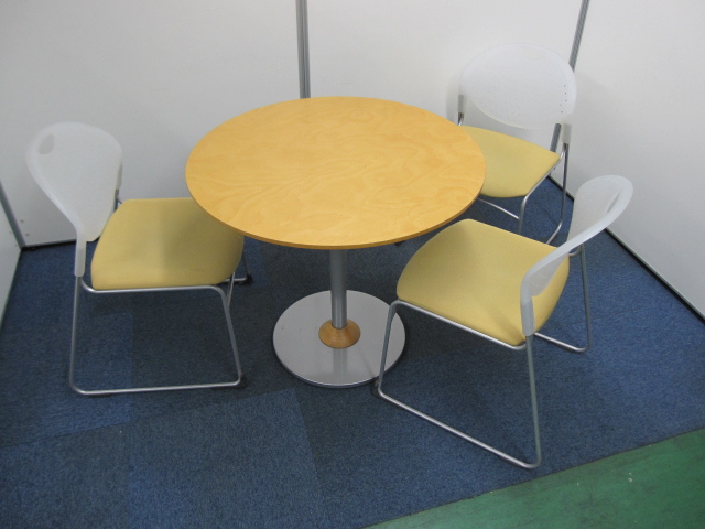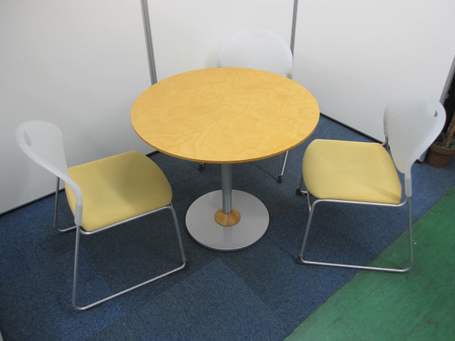 高級丸テーブルとお手頃ミーティングチェア×3脚の