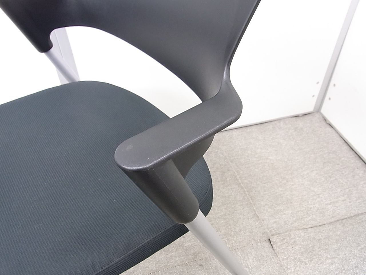 【シンプルスマートなスタッキングチェア!分厚いクッションで長時間でも快適な座り心地!】■コクヨ(KOKUYO)製 プロッティシリーズ スタッキングチェア 肘付ミーティングチェア ■固定肘 ■キャスター付 ■ブラック ■背面樹脂 【弊社使用欄:A01006552】