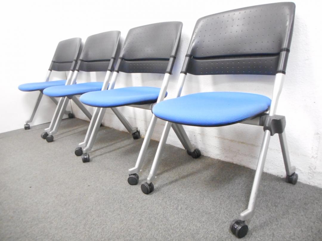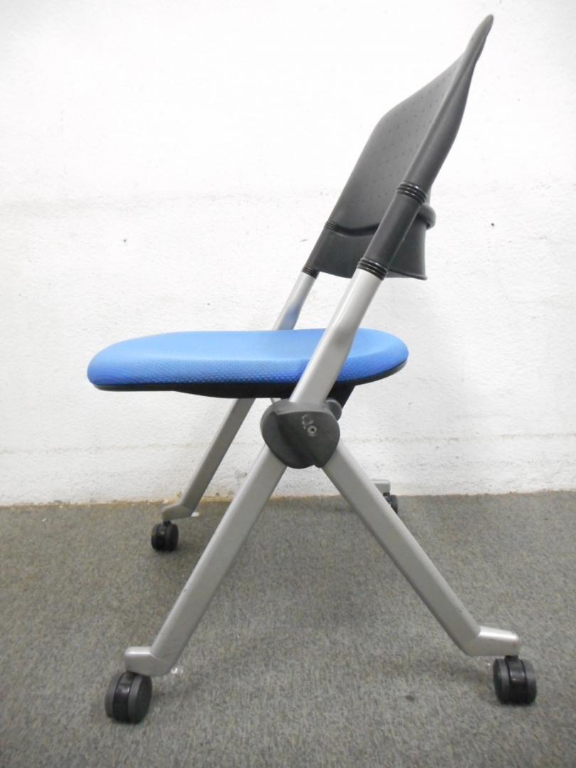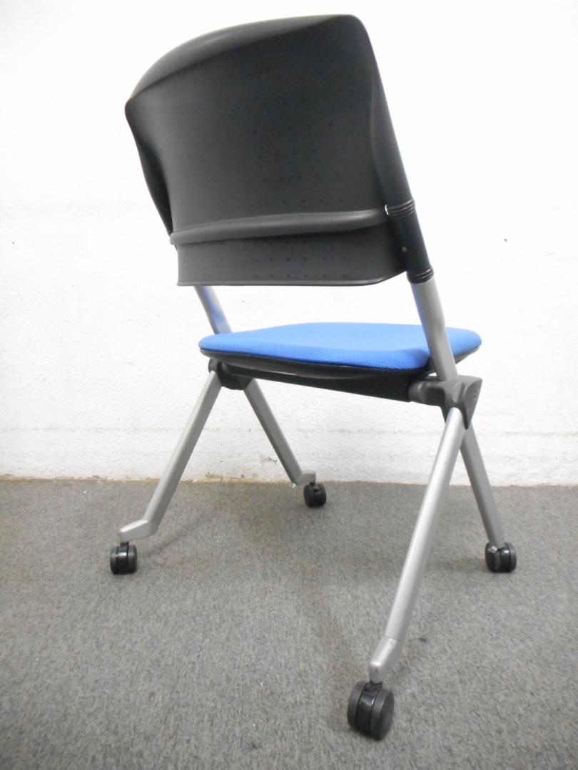 ■スタッキングチェア【垂直・水平2パターンのスタッキング対応!】■ブルー・キャスター付■オカムラ・LITA【ネスティングチェア】- 在庫数