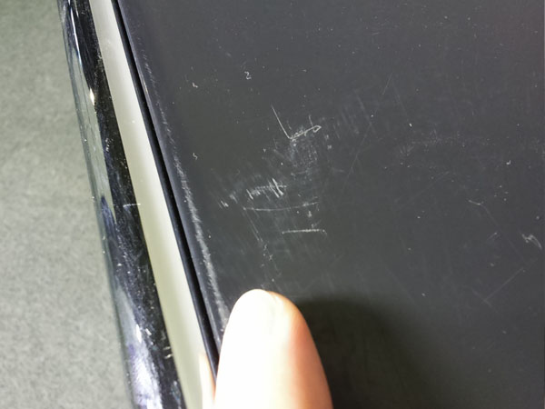 - あり黄ばみ・変色が広い範囲にうっすらある、または濃い黄ばみ・変色が一部ある。(例、天板、正面、背部、サイド部分にある。)