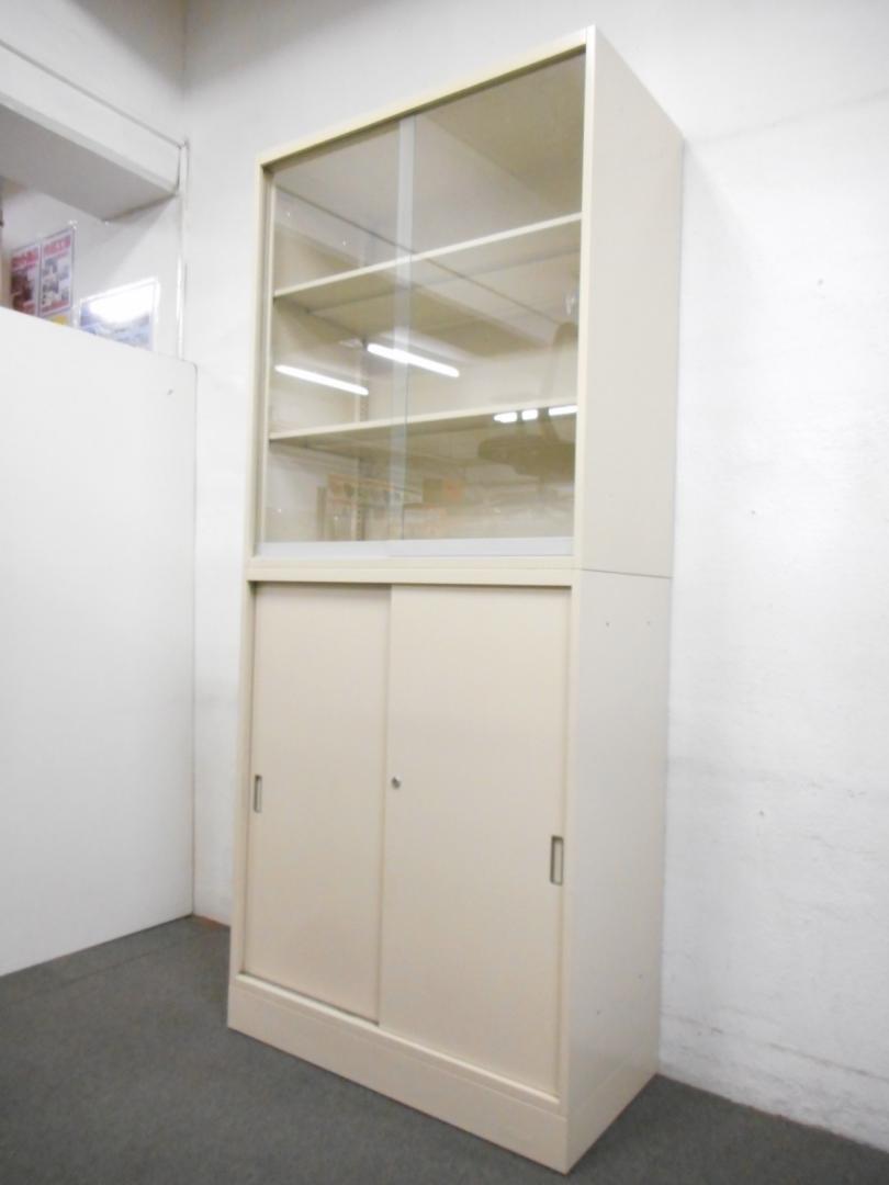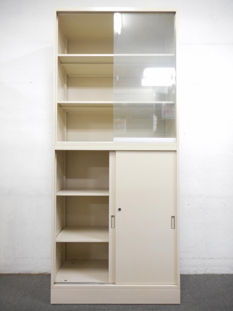 ■書庫セット【ガラス引戸&スチール引戸】■【スペースを圧迫しない引違い戸】■オカムラ・42シリーズ■アイボリー- 在庫数