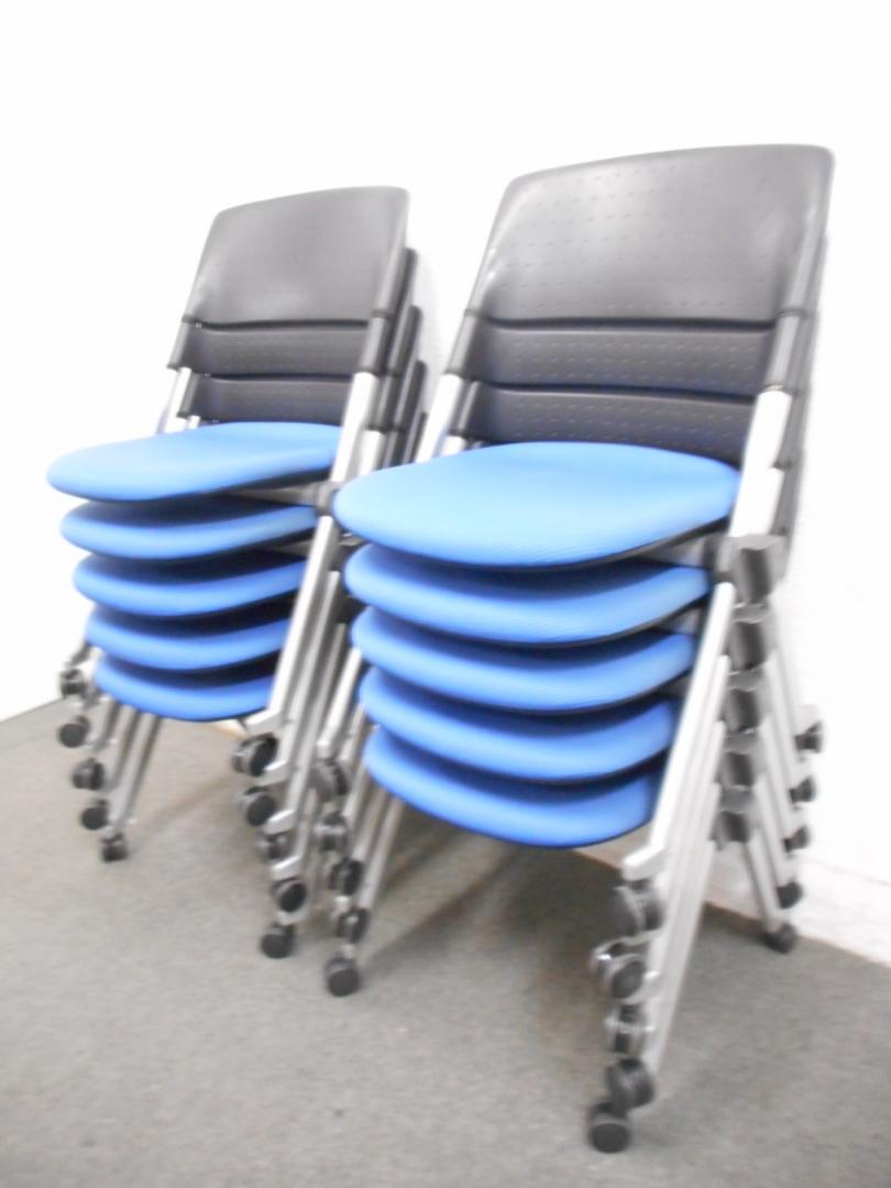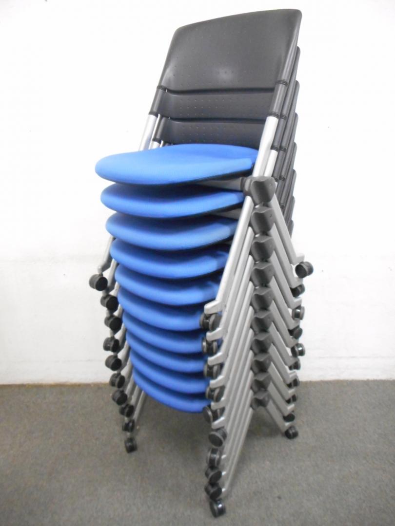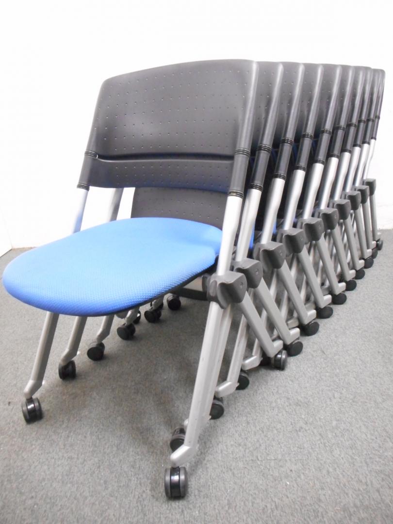 ■スタッキングチェア10脚セット(キャスター付)■オカムラ・LITA【ネスティングチェア】■ブルー・ブラックシェル■【垂直・水平2パターンのスタッキング対応!】【セット商品】- 在庫数