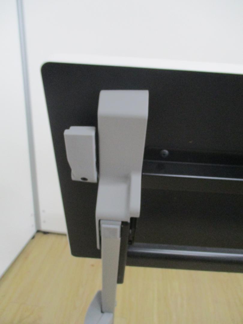 - 一部不具合あり天板歪み、アジャスター無し、キャスター使用不可ようなそのテーブルの本来の効用を果たすための機能以外の一部が使用不可な状態。(例、キャスターロッ ク機能使用不可、棚板無し等がある。)