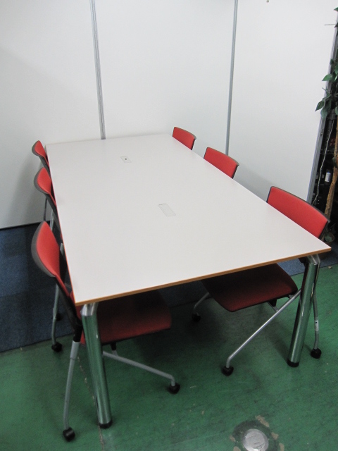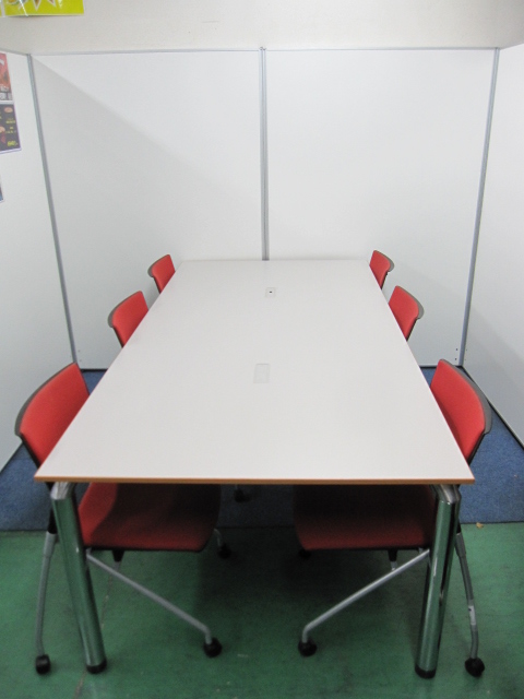 4~6名用会議机【10%off】【幅2100】ミーティングテーブルセット 6脚のネスティングチェア【配線タップ付】- 品川・三田店