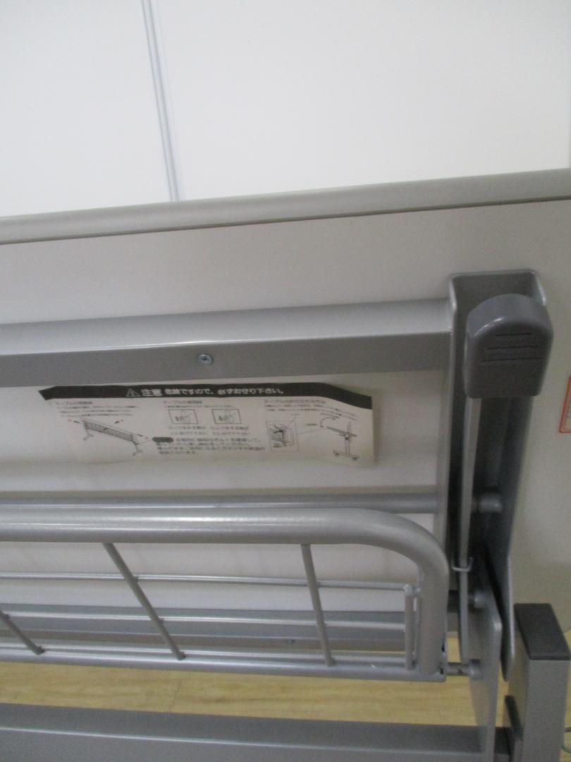 - 一部不具合あり天板歪み、アジャスター無し、キャスター使用不可ようなそのテーブルの本来の効用を果たすための機能以外の一部が使用不可な状態。(例、キャスターロッ ク機能使用不可、棚板無し等がある。)