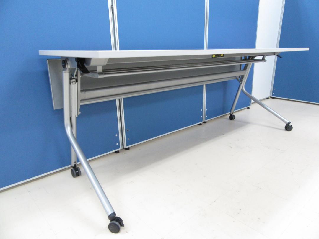 【14台入荷!状態良好!】岡村製作所製 サイドスタックテーブル 幅1800mm 奥行600mm■会議室・セミナー等で大活躍!【フラップ式会議テーブル】【ロット商品】- 足立・葛飾店