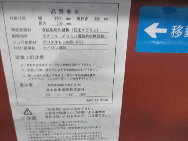 【中古】 KS KS-1845 井上金庫 スタックテーブル(長机/折りたたみ/会議用) 152804