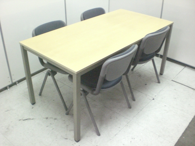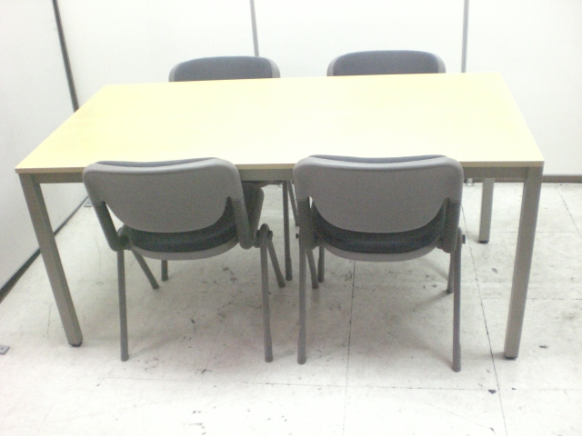 【2セット限り】快適さとデザインの融合! 木目調テーブルとチェアの4名ミーティングセット!!- 京都東寺店