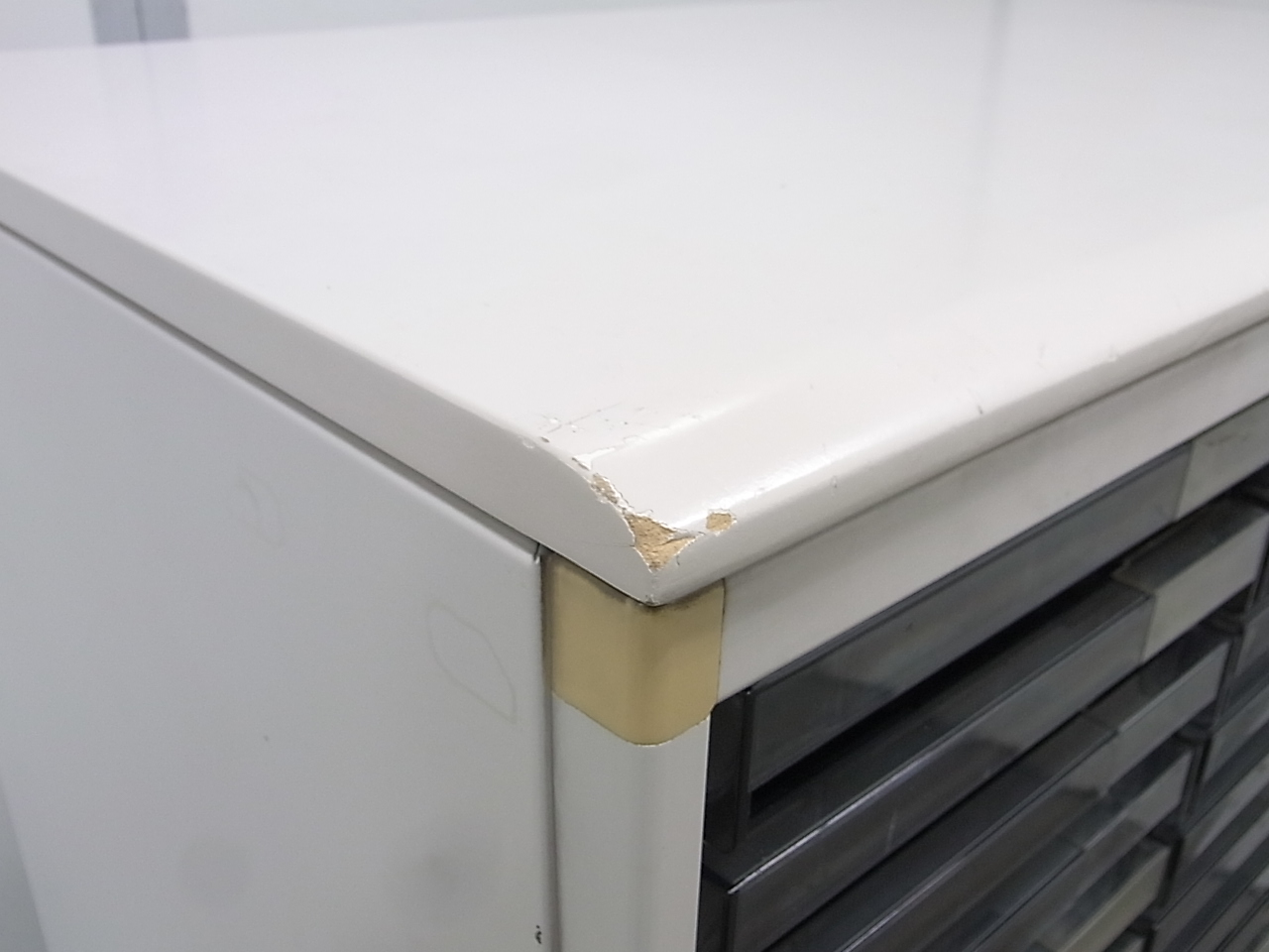 - 多数不具合あり引出の開閉不可、施錠不可、棚板無しといったその書庫の本来の効用を果たすための機能以外の多数が使用不可(例、扉、引出の開閉がしづらいなどがある。 )