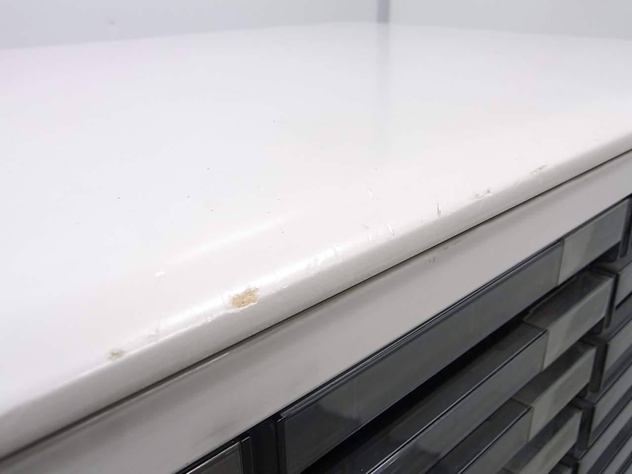 - 一部不具合ありそ引出の開閉不可、施錠不可、棚板無しといったの書庫の本来の効用を果たすための機能以外の一部が使用不可(例、扉、引出の開閉がしづらいなどがある。 )