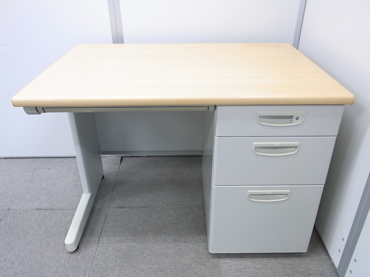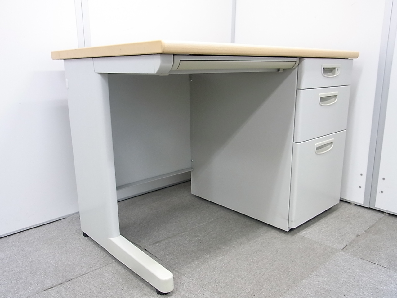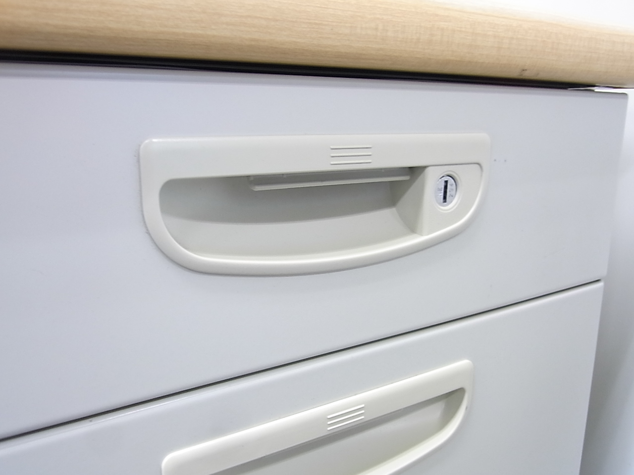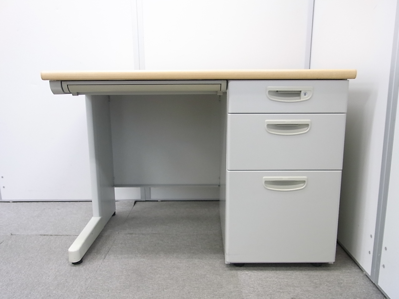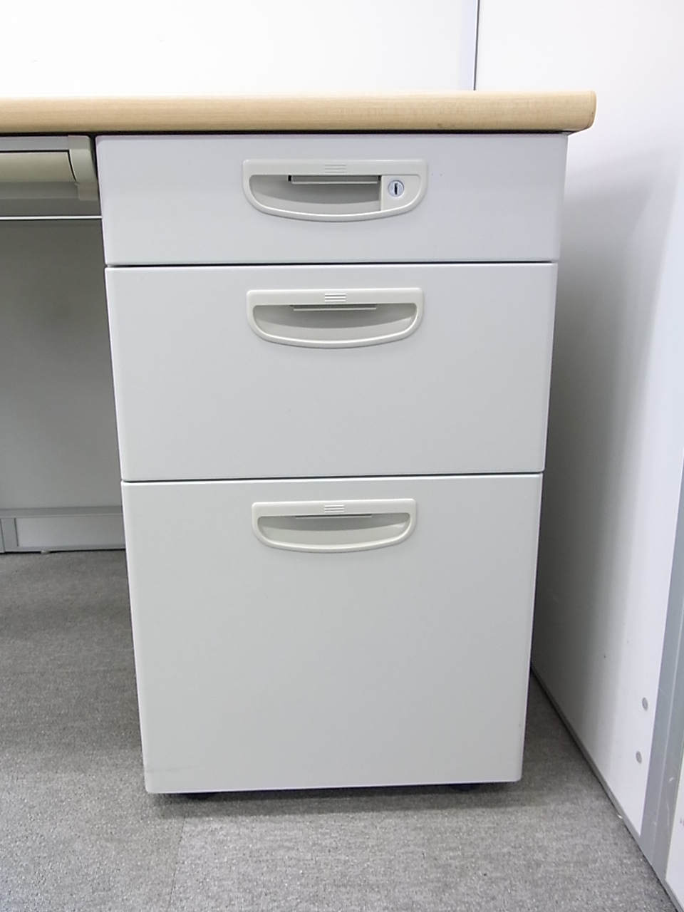 【2台入荷!状態良好!】ナイキ製の片袖机が入荷です!引き出し3段の片袖机!天板は木目調の温かみあるデザイン!- 在庫数
