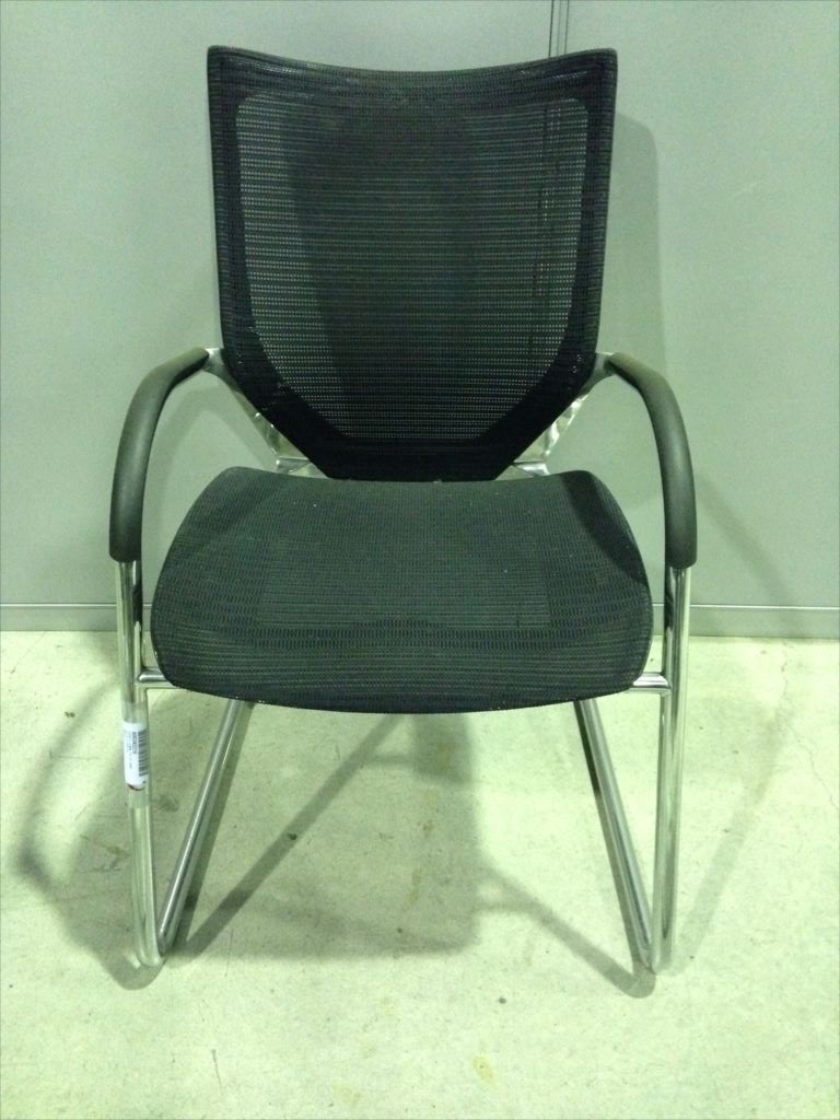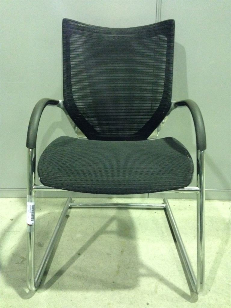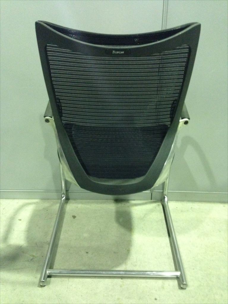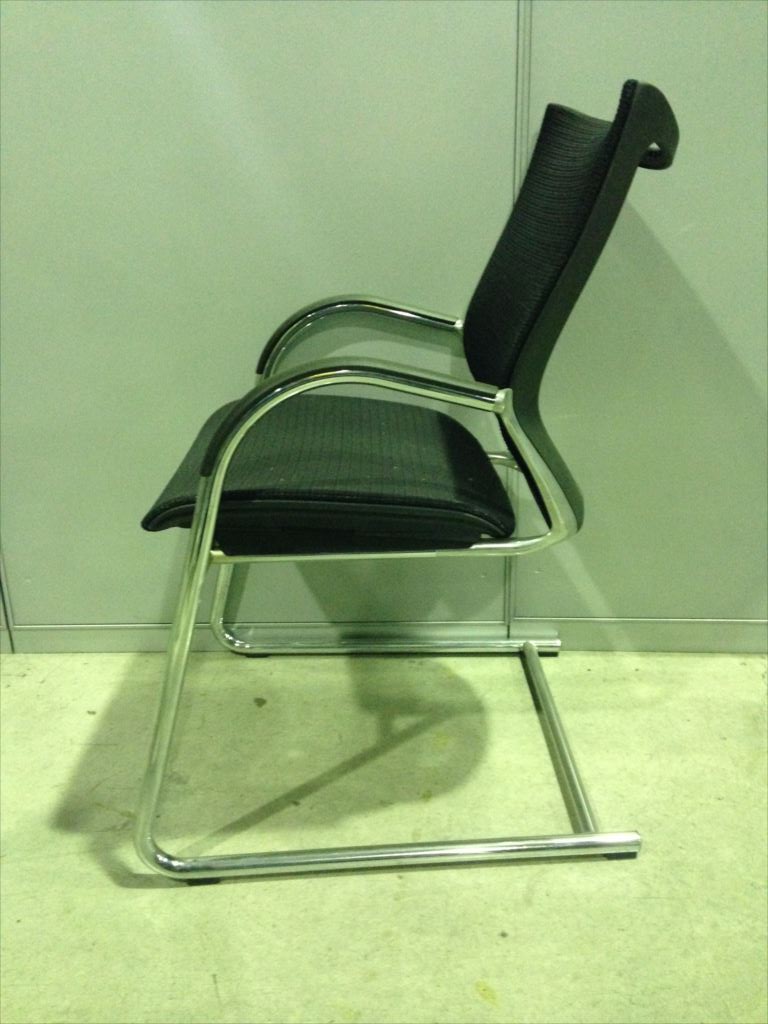 【在庫入替セール】オカムラ バロン ゲストチェア(ミーティングチェア) 背メッシュ×座クッション カンチレバー脚 ブラック×クロームメッキ