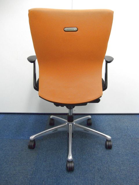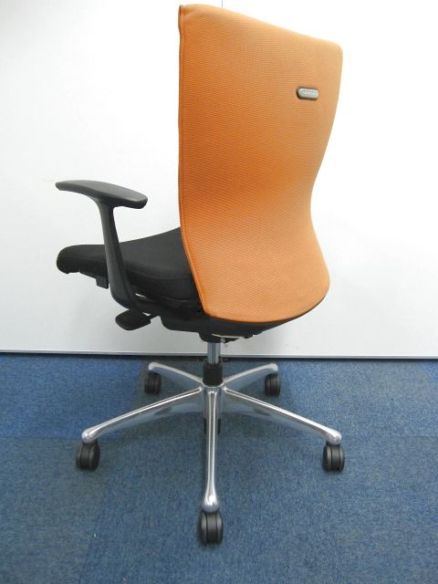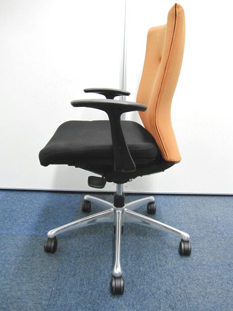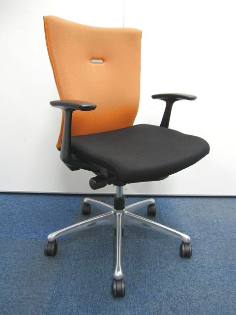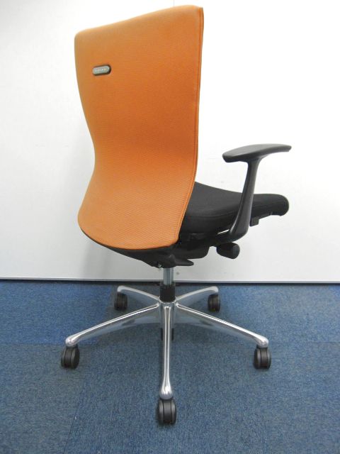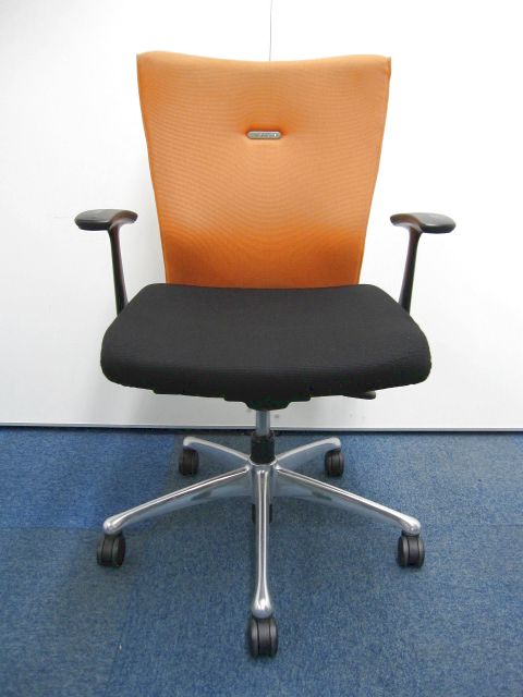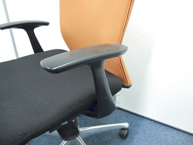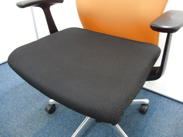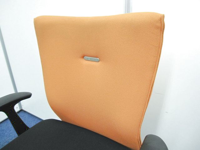 【状態良好】【オフィスチェア】ミドルバック サイドファスナータイプ デザインアーム(固定肘) カラー:背:オレンジ 座:ブラック【残り1脚】【事務椅子】- 品川・三田店