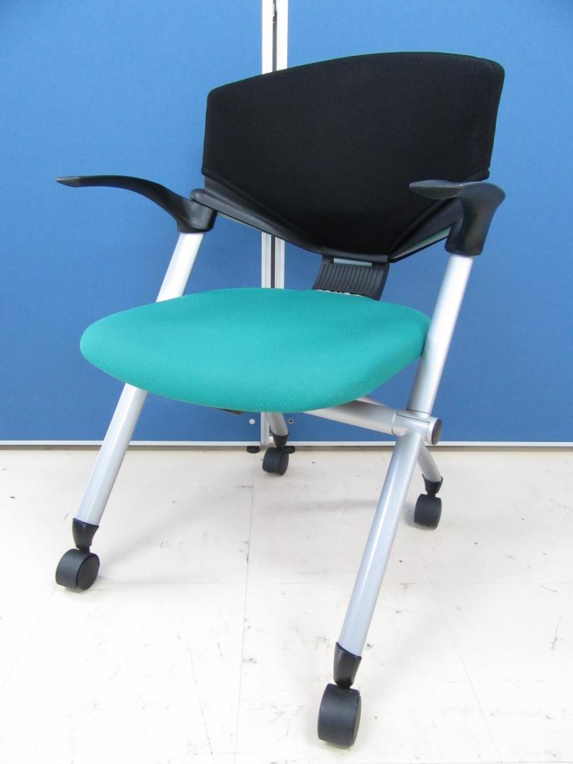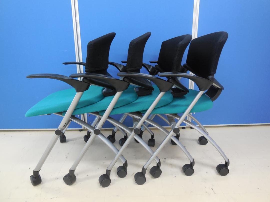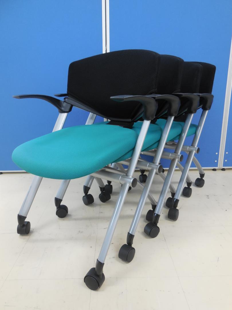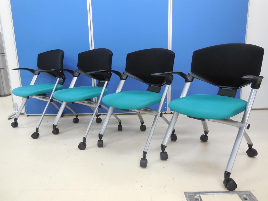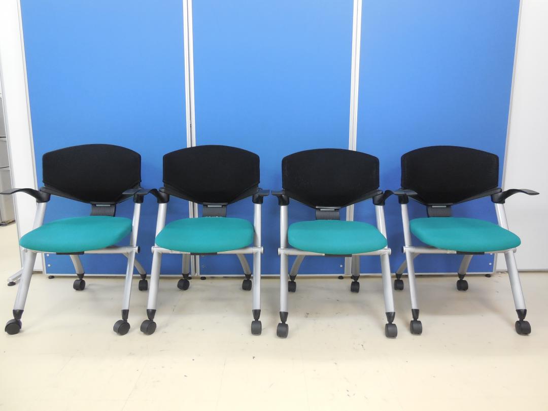 【4脚1セット!】コクヨ製 スタッキングチェア コルサチェア■ブラック×グリーンのお洒落なカラー!肘付きで腕も疲れにくい!【グッドデザイン賞受賞】- 足立・葛飾店